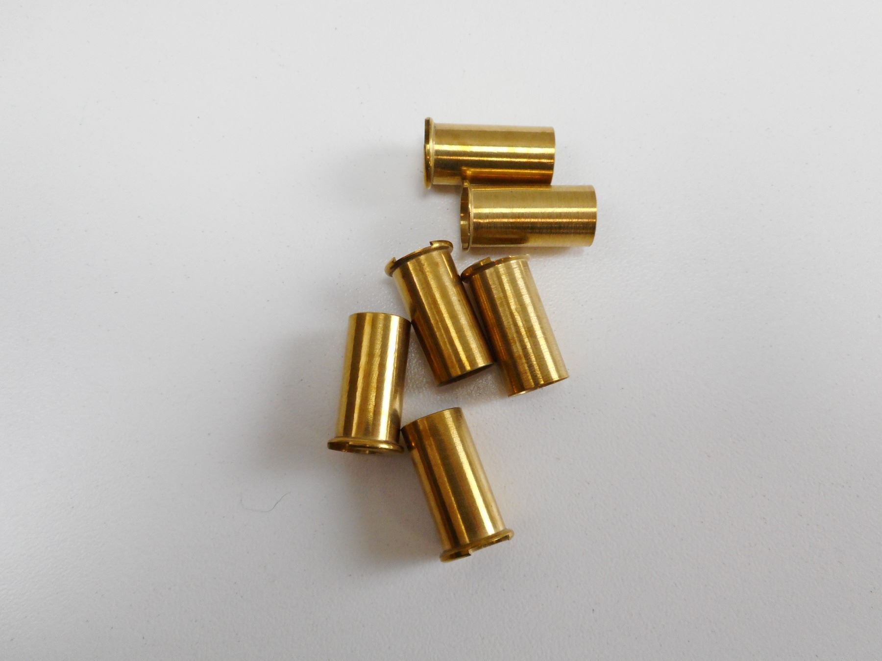 .38 RIMFIRE BRASS CASES , 6 BRASS CASES, DESIGNED TO USE A .22 RIMFIRE BLANK