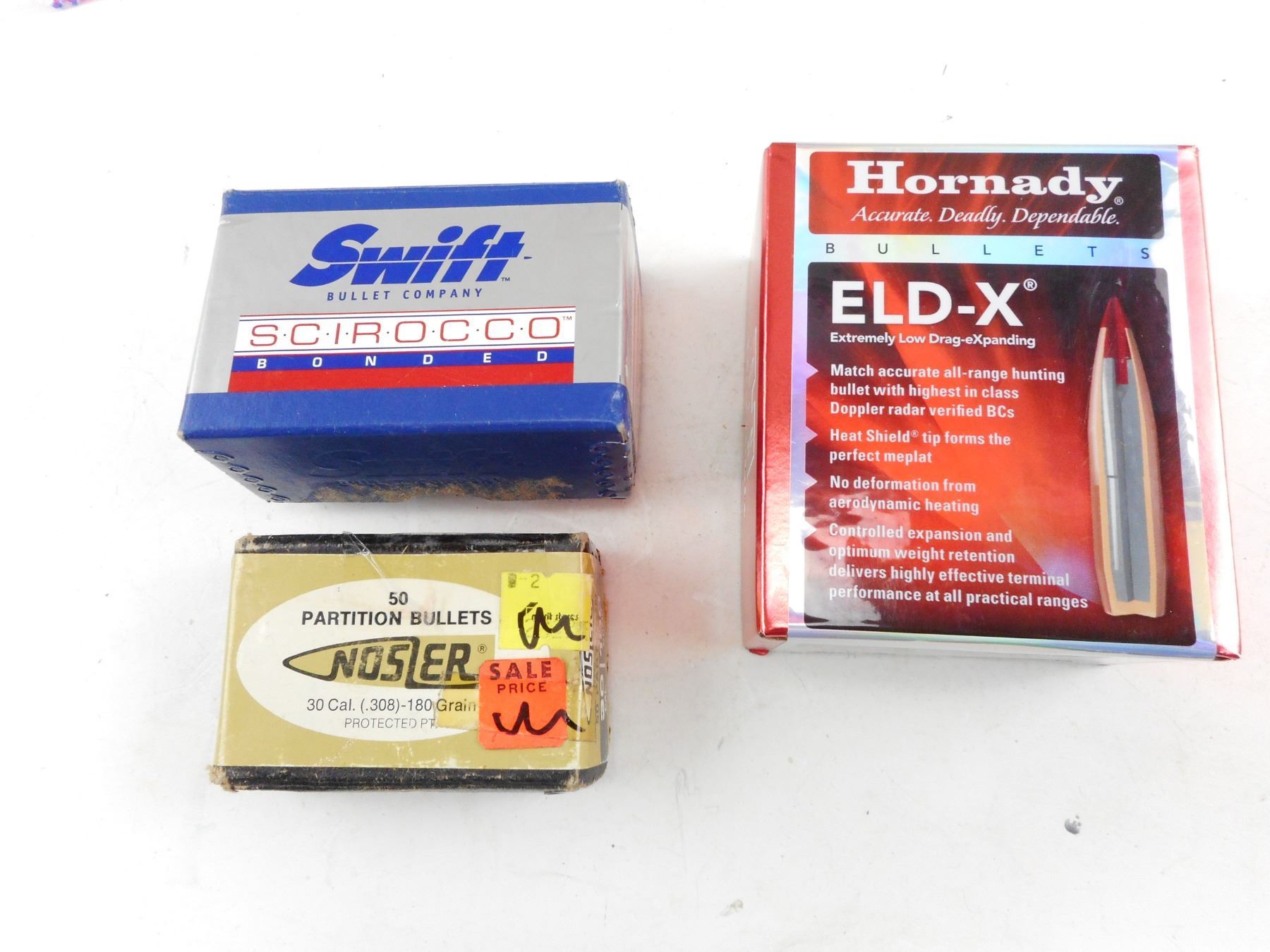 Lot 15035 .30 CAL, BULLETS, SWIFT, NOSLER, HORNADY, 1 SEALED BOX