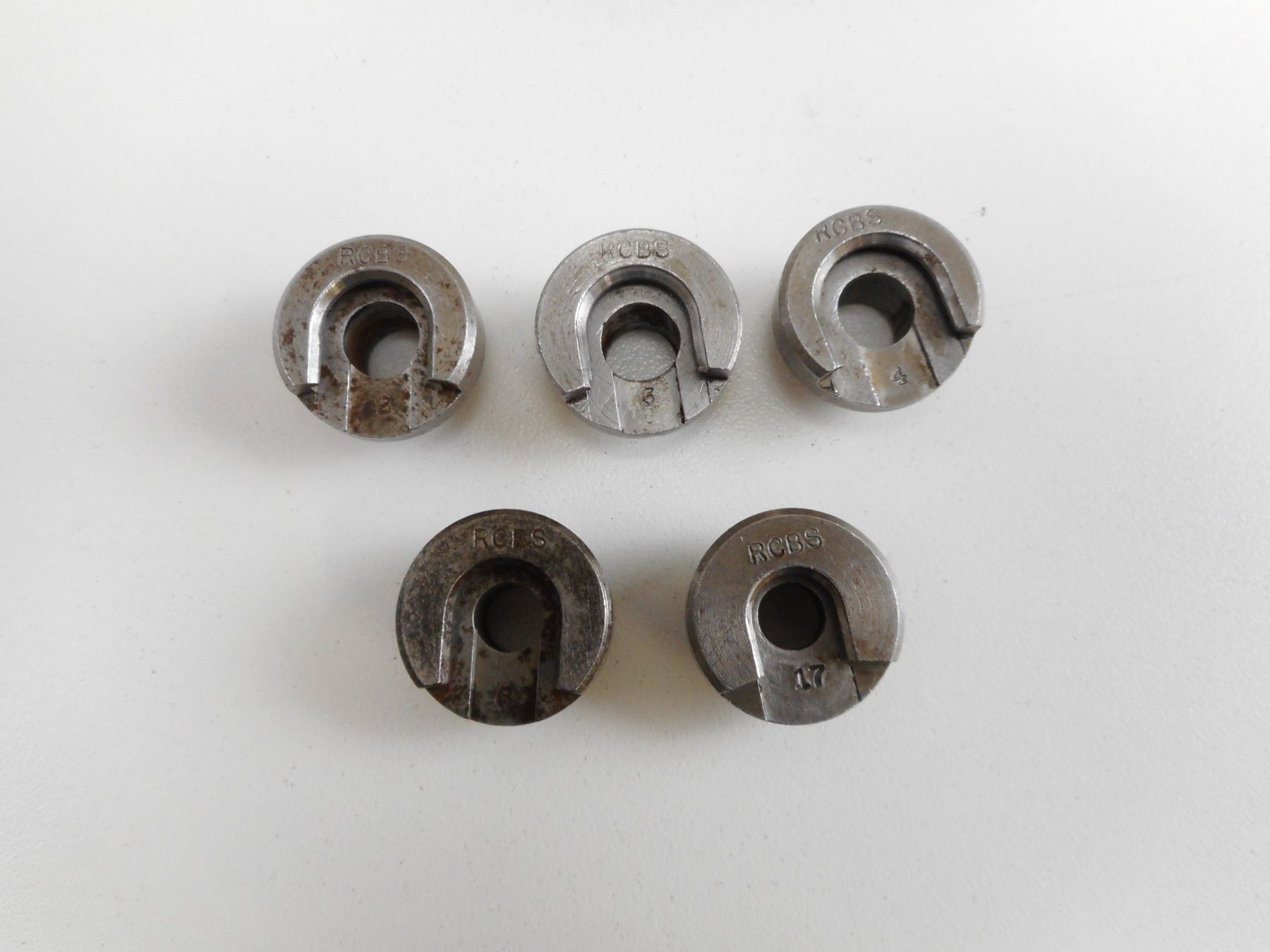 ASSORTED RCBS SHELL HOLDERS , LOT OF 5, INCLUDES NUMBERS, 2, 3, 4, 6, 17