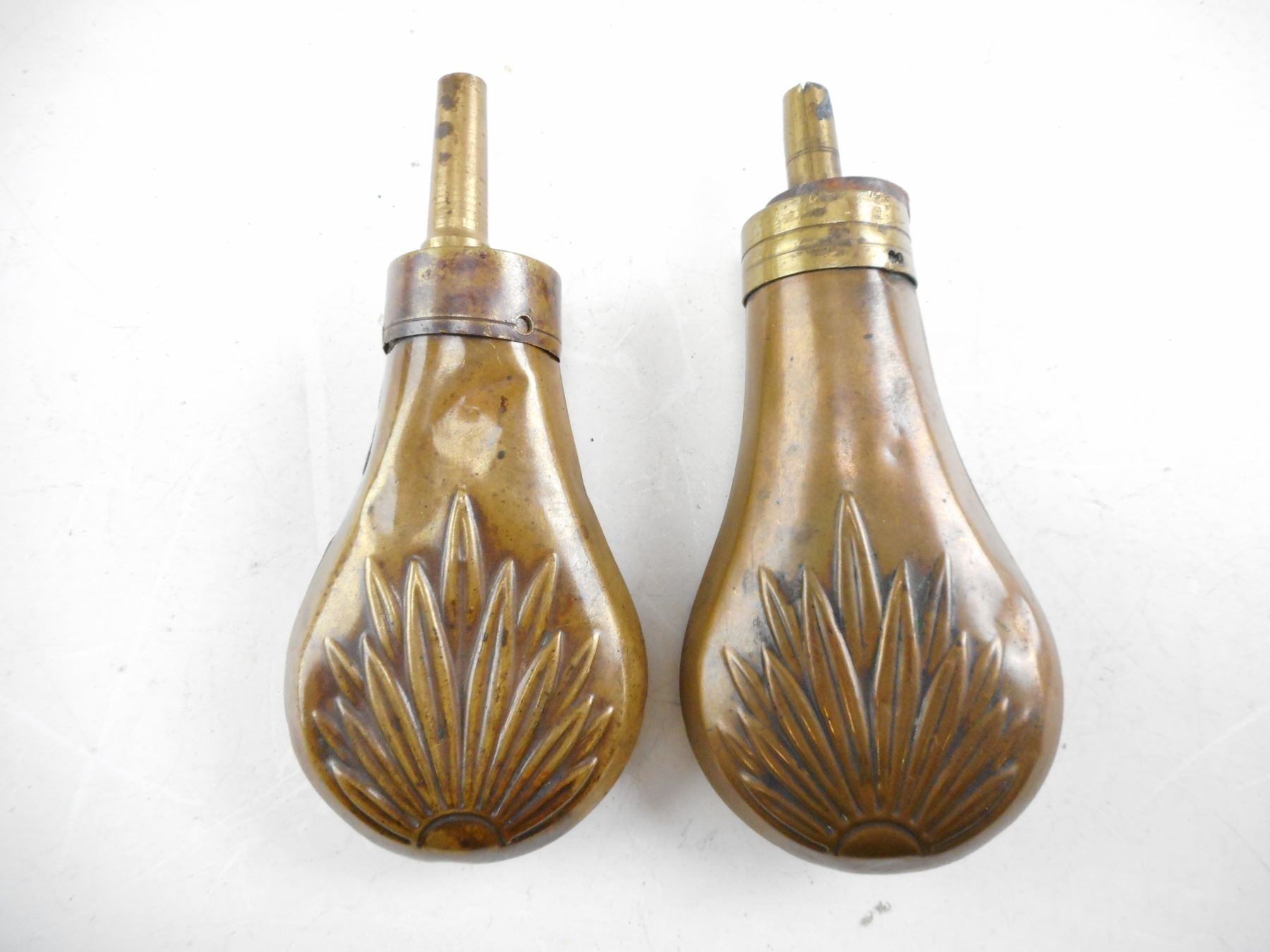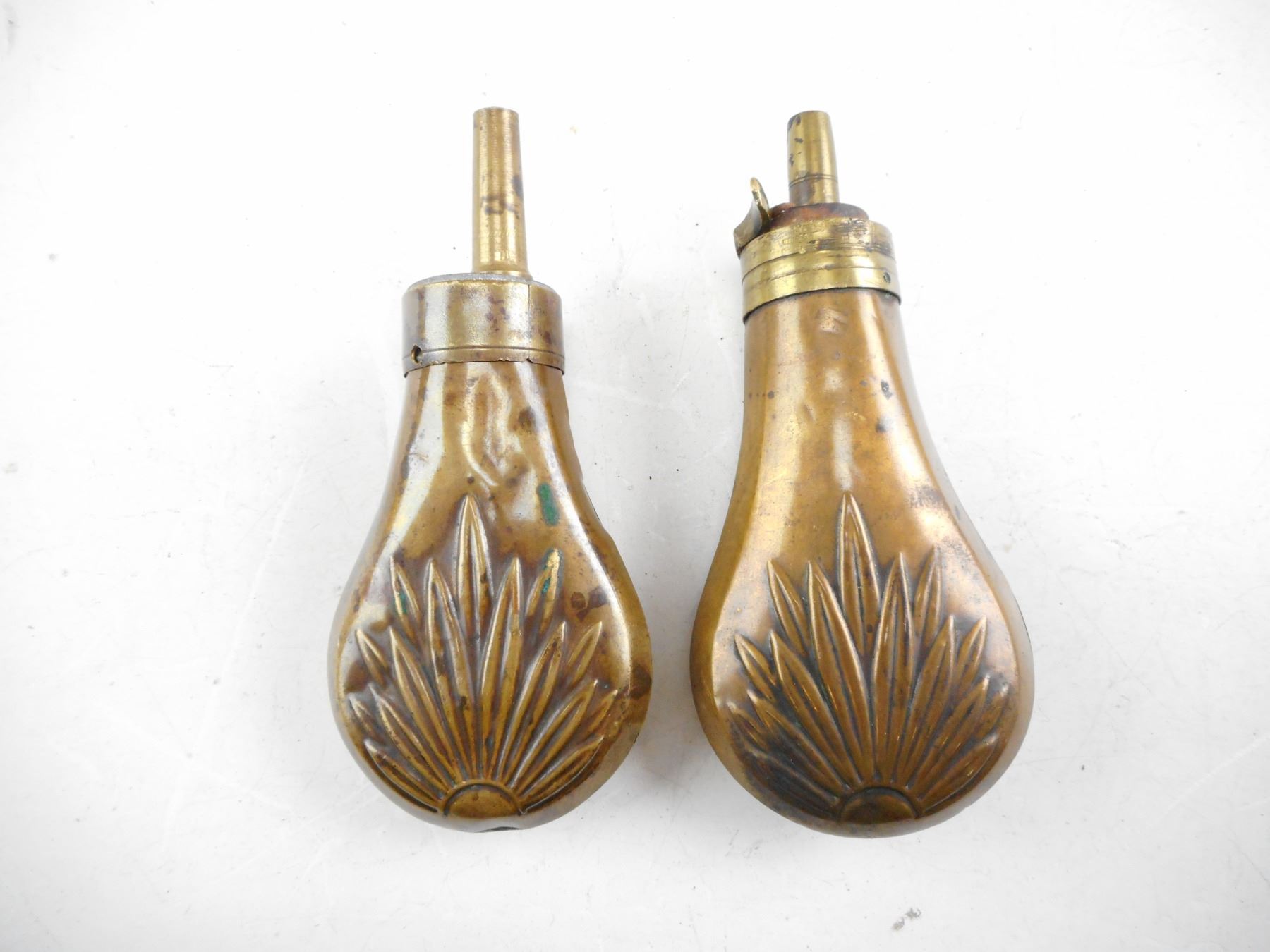 SMALL POWDER FLASK, WITH DESIGN , LOT OF 2 FLASKS