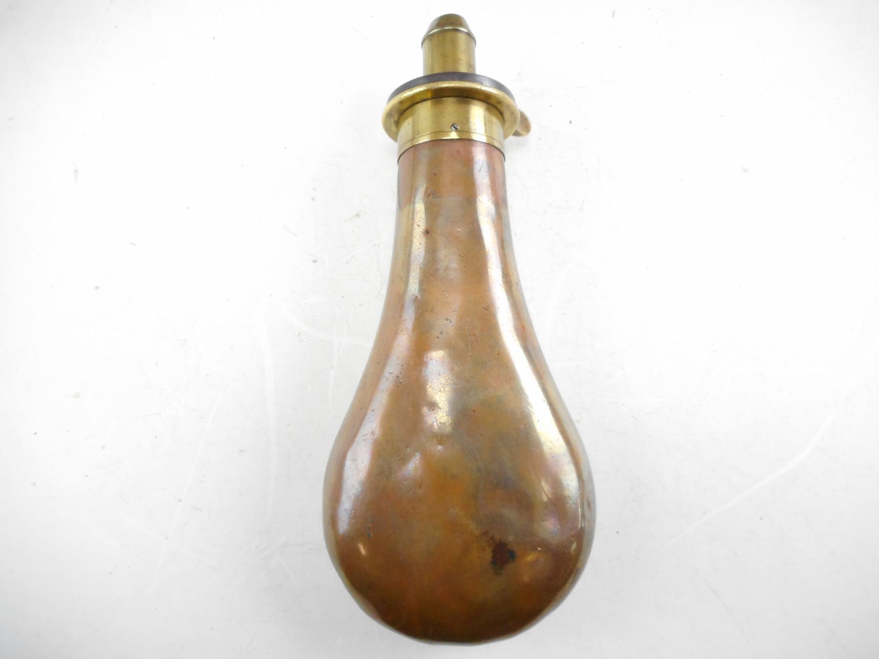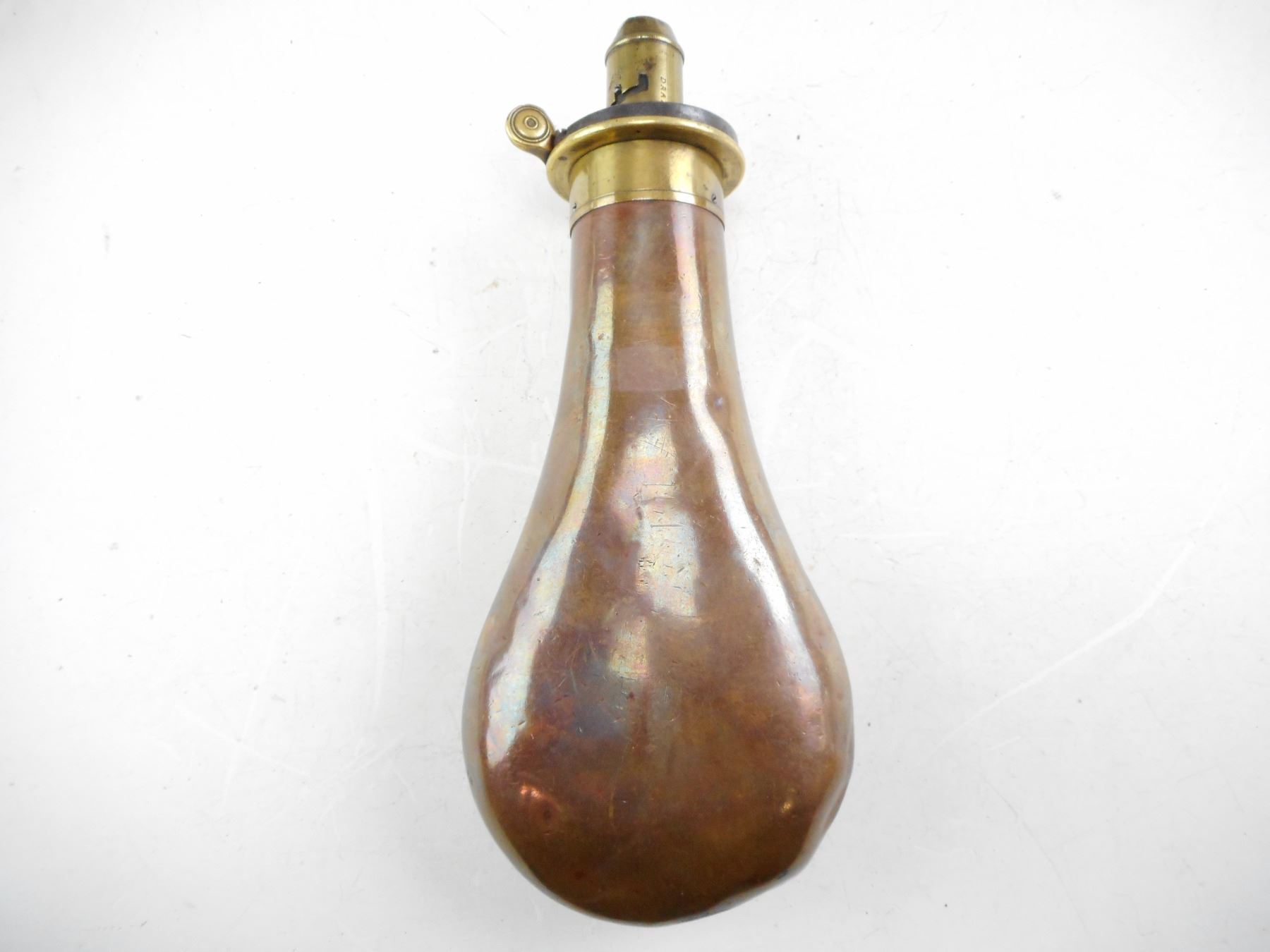 VINTAGE POWDER FLASK, MARKED QUICK LOADING FIRE PROOF SYKES PATENT, W.F BALL 1882 SCRATCHED INTO THE BODY , LOT OF 1 POWDER FLASK