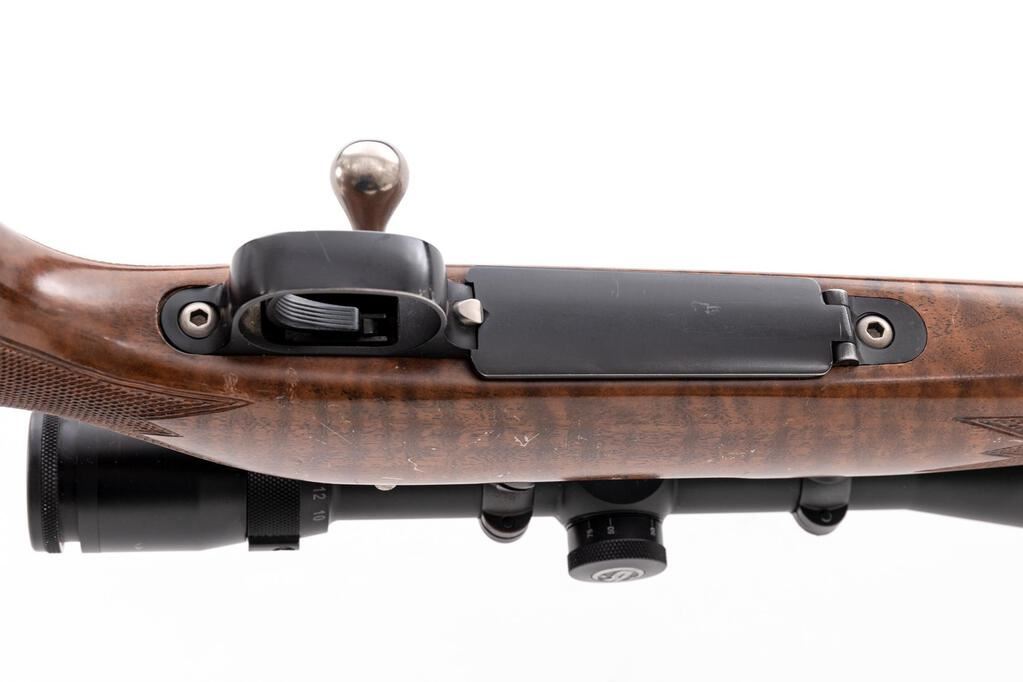 McMillan Bros. MCRT Bolt Action Rifle, with Bushnell Scope, #SS-183, 6.17 Spitfire cal., 24" Sporter barrel is unmarked except for caliber, metal with a dark blue finish. Pistol grip wood grain pattern fiberglass stock with point checkering, slight right-hand palm swell, Monte Carlo comb, cheekpiece, solid black rubber Decelerator recoil pad, and sling swivel studs. Barrel was mfg'd without sights. Topped with a Bushnell Legend Ultra-HD 4.5-14x44mm scope. Scope has a matte black finish, Mil-Dot reticle, and sunshade. Metal surfaces rate in excellent overall condition retaining approx. 97% finish, with light scratches and edgewear to the trigger guard and floorplate. Stock is very good with scattered light scratches, handling marks, cheekpiece edgewear. Action is crisp and operates smoothly, bore is mirror bright with strong rifling. There are light scuffs and minor blemishes visible on the outside of the scope, optics are bright and clear.  Includes an RCBS 6.17 Spitfire full-length resizing die and seating die, and an additional Bonanza 7mm Remington full-length sizing die.  Est.: $1,800-$2,400. (Modern)