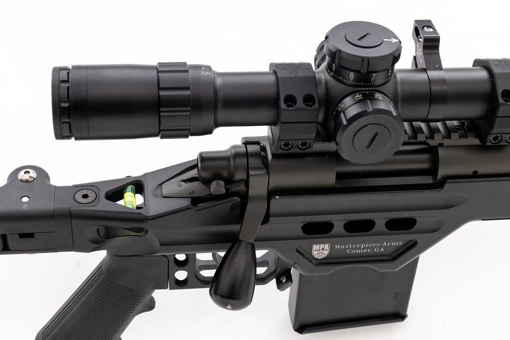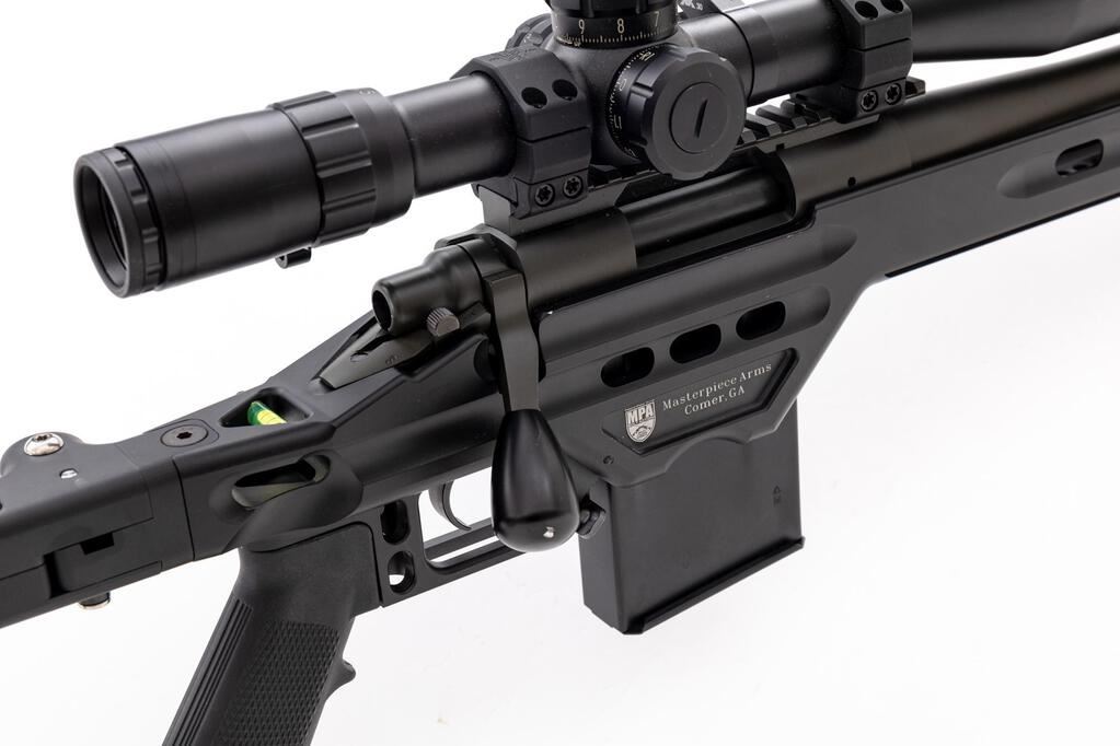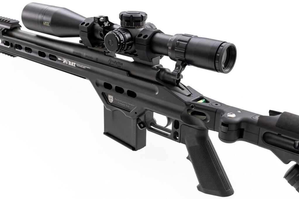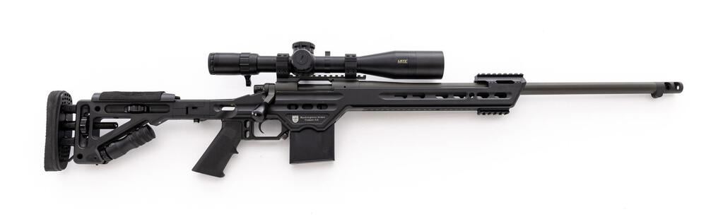Remington Model 700 Bolt Action Rifle, #RR56585H, .223 Rem. cal., 24.25" Bartlein barrel with unmarked clamp on muzzlebrake, OD Green finish, Masterpiece Arms chassis with folding stock, and one 10-rd. steel magazine. Topped with a Bushnell Elite Tactical LRTS 30mm rifle scope. Rifle is in overall excellent condition showing minor handling marks. Adjusting points on the MPA stock all function as designed, folding mechanism is solid. Bushell scope sits atop a Seekins Precision 20 MOA cant rail and is held by Seekins aluminum mounts. Scope adjusts from 4.5-18 and has an added Vortex scope level, the Bushnell G# reticle is clear. Additional accessories for the scope are a sunshade and plastic scope covers. Rifle weighs approx. 13 lbs. Consignor provided the following information: Rifle was built by a So. California gunsmith using a Remington short action which was blueprinted. Bartlein barrel has a twist rate of 1:7.7". A very nice rifle for your long-range shooting needs. Est.: $2,000-$2,500. (Modern)