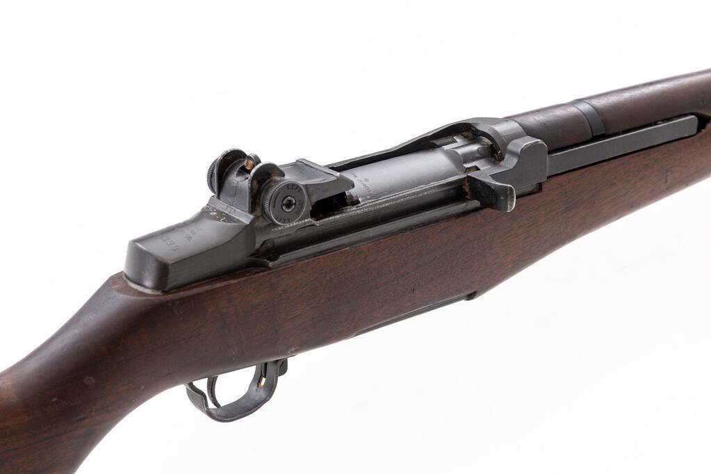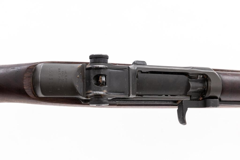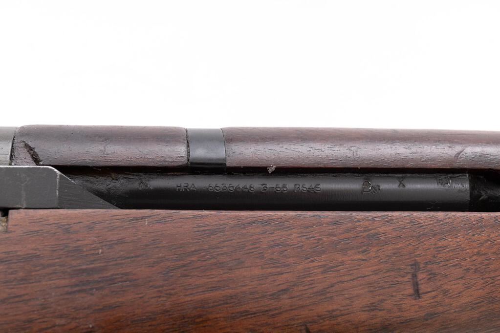 H&R M1 Garand CMP Correct Grade Semi-Automatic Rifle, #5589399, .30-06 cal., 24" barrel, parkerized finish, walnut stock set, blade front sight with protectors and adjustable aperture rear sight. Marked on receiver tang "U.S.RIFLE CAL..30 M1 H.&R. ARMS CO."; on right side barrel "HRA" and "3-55". There is a U.S. Defense Dept. eagle cartouche on the left side of the stock forend, and a "(circle)/P" firing proof on the underside of the wrist. Includes a very good condition CMP "M1 Garand Correct Grade" Certificate of Authenticity and a good condition CMP shipping box. The bolt, trigger housing, hammer, and operating rod are all marked "HRA". Condition overall is very good with the metal retaining approx. 90% finish, with what appears to be chemical stains that have removed areas of finish on the exposed barrel. Wood is very good with light handling marks to the dark finish. Action operates smoothly; bore has darkening in the grooves, otherwise good with good rifling. No visible import marks. Est.: $1,200-$1,600. (C&R/PPT)