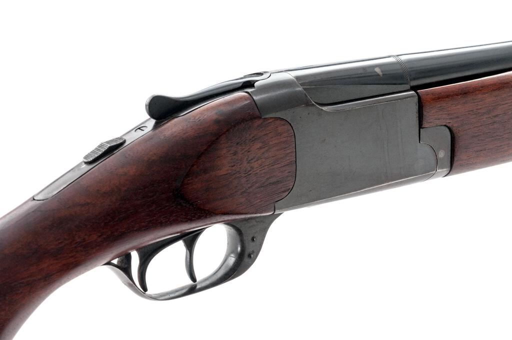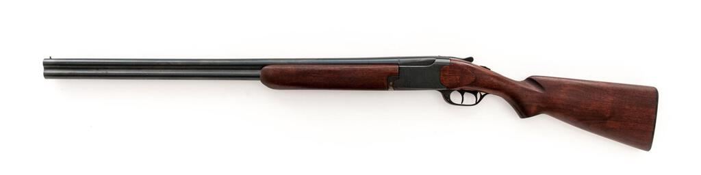 Ranger Model 103-1 Field Grade Over/Under Shotgun, NVSN. 12 ga. 30" plain barrels have 2-3/4" chambers and are choked IC./Full. The boxlock action features double triggers, non-automatic safety, and plain extractors; receiver is unengraved. The full forend and pistol grip buttstock are oil-finished walnut, unchecked, with a plastic buttplate installed. Mfg'd approx. 1950's. Condition is very good, with few marks to wood and moderate wear to action, which closes tight and functions correctly; bores are very good. Est.: $250-$350. (C&R)
