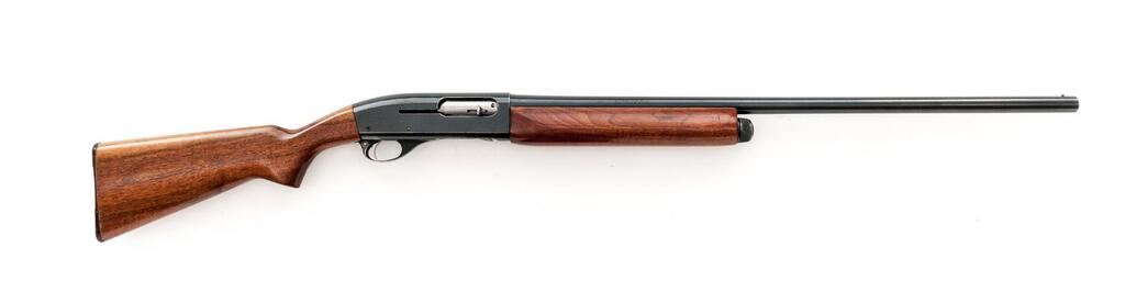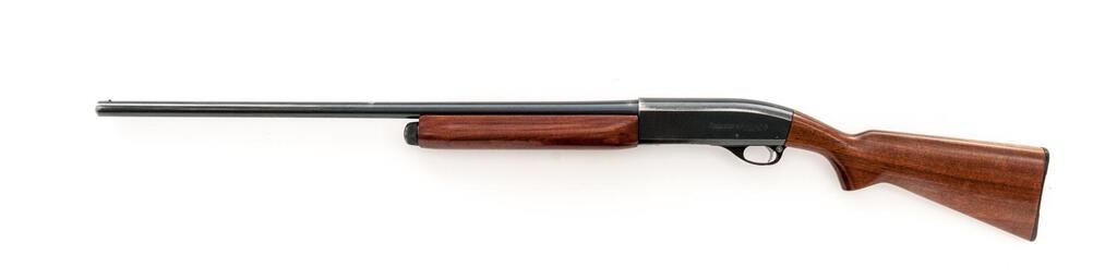 Remington Automaster Model 878 Semi-Automatic Shotgun, #18051L. 12 ga. 28" plain barrel has a 2-3/4" chamber and is choked Mod. The gas-operated 878 action is similar to the more deluxe Model 58, and both were superseded by the Model 1100. The full forend and pistol grip buttstock are uncheckered Field Grade walnut, with Remington buttplate. Mfg'd approx. 1960. Condition is very good with some handling marks to wood and edgewear to receiver but little wear to action, which closes tight and functions correctly; bore is mirror bright. Est.: $250-$350. (C&R)