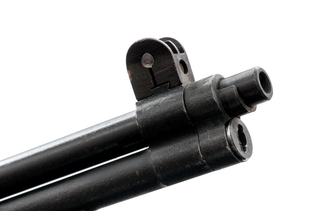 Springfield M1 Garand Semi-Automatic Rifle, #1472415, .30-06 cal., 24" barrel, parkerized finish, walnut stock set, blade front sight with protectors and early rear sight with flush nut and locking bar. Gas plug is early single slot type. Butt trap door is jammed shut preventing inspection. Rifle is marked "U.S. RIFLE CAL..30 M1 SPRINGFIELD ARMORY" on receiver tang. Right-side barrel is marked "3-S-A-3-43". The bolt, operating rod, trigger housing, and hammer are all marked "SA"; stock is unmarked. Condition overall is fair with the metal retaining approx. 80% finish, showing old frosting across the receiver area and barrel. Stock has added finish applied and is broken along the underside of the forend and thru the left side of the wrist (needs replacement); rear hand guard is also cracked. Action operates smoothly, dark bore is fair with frosting in the grooves and good rifling. No visible import marks. Est.: $600-$900. (C&R/PPT)
