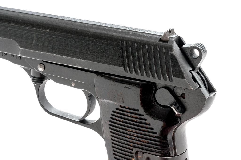 Czech CZ-52 Semi-Automatic Pistol, with Extra Barrels and Firing Pin, #F15519, 7.62x25mm, 4.7" barrel, parkerized finish, brown grooved grips, blade front sight and drift adjustable rear sight with "U" notch. Pistol comes with one excellent condition magazine and an extra firing pin. Extra barrel #1 is blued and has a small proof stamp on top of the chamber. Condition is excellent. Extra barrel #2 has less than 10% finish and is marked with serial #T10266 on the right-side chamber. Bore has darkening in the grooves otherwise good overall. Pistol is marked "rid" on left-side frame and "(Crossed Swords)53" on right-side frame. Matching numbers on slide and frame. Slide has a series of small punch marks on top flat. Condition overall is very good with the metal retaining approx. 85% finish, with high edgewear to both sides of slide. There is a chip to the base of the right-side grip, otherwise both are good, showing small chips to the horizontal grooves and light scratches. Action operates smoothly, bore has areas of old patina and some darkening that may clean better with good rifling. Import stamped on right side frame. Est.: $500-$700. (C&R/PPT)