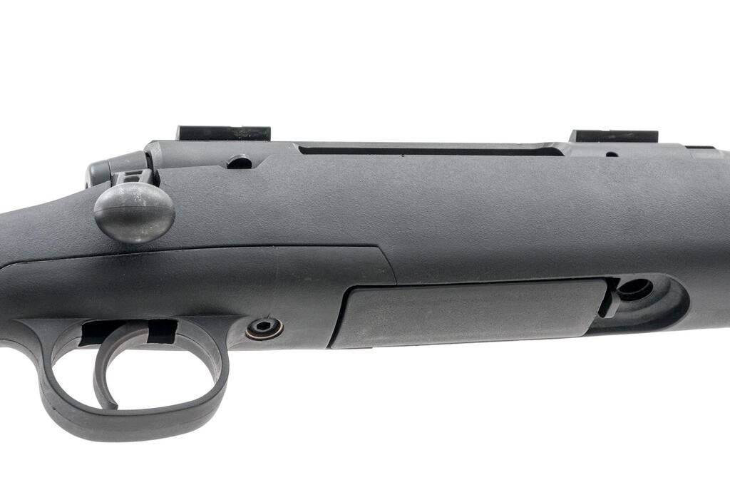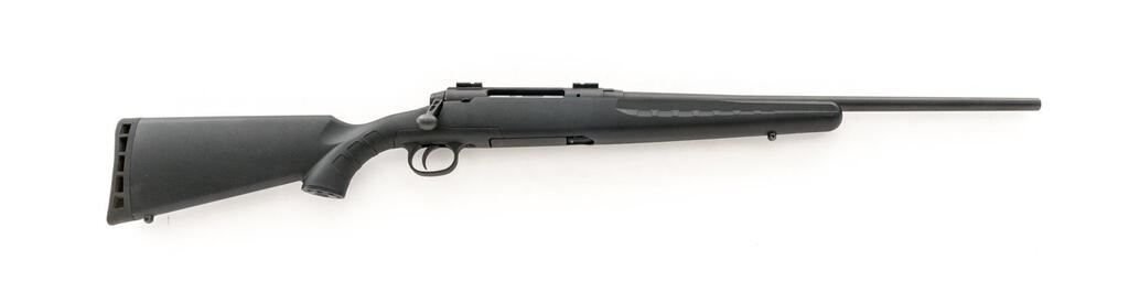 Savage Axis Compact Model Bolt Action Sporting Rifle, #H606744, .243 Win. cal., 20" barrel with no accommodation for sights, tang-mounted safety, matte blue finish, matte black synthetic one-piece pistol grip stock with a ventilated rubber recoil pad, sling eyes and 4-rd. detachable magazine. Rifle is in near excellent condition showing little use. Receiver is factory drilled and tapped with Weaver two-piece bases added. The synthetic stock is very good with a ventilated rubber recoil pad providing a 13.25" LOP. Bore is very good with defined rifling and the action works well on this Savage youth model Sporter. Est.: $200-$400. (Modern)