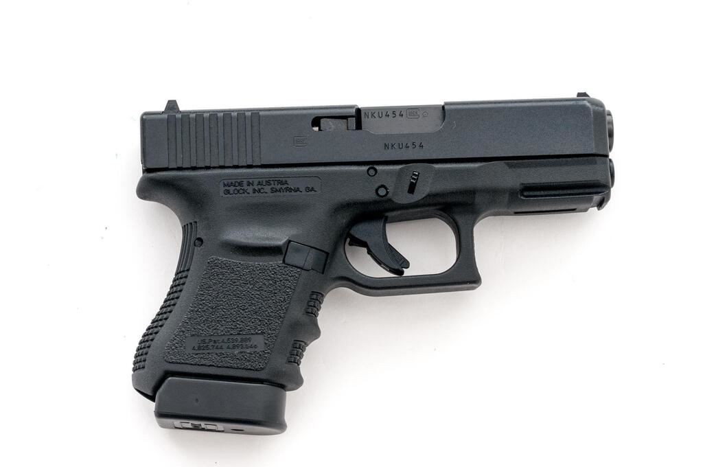 Glock Model 30 Gen 3 Semi-Automatic Pistol, #NKU454 .45 ACP cal., 3.77'' barrel, matte black finish, black polymer frame, white dot front sight and white outline rear sight, with two (2) 10-rd. Glock magazines. In non-matching Glock case with owner's manual, lock, and cleaning accessories. In excellent condition, appears minimally fired. Smooth action and mirror bright bore. Est.: $400-$600. (Modern/PPT)