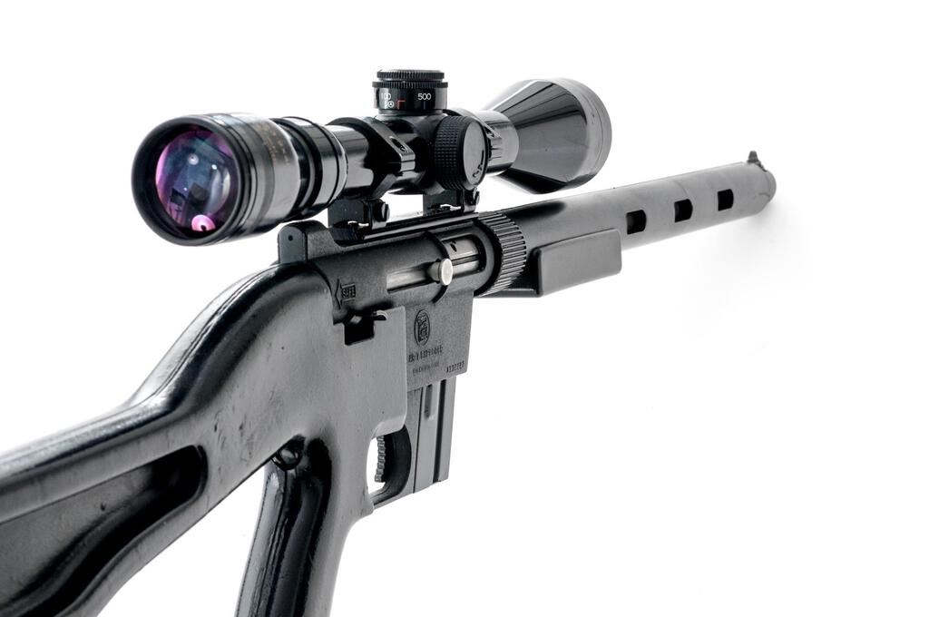 Early Charter Arms AR-7 Explorer Semi-Automatic Takedown Rifle, #A132227, .22 LR cal., 16" barrel with faux shroud, blade front and receiver mounted fixed aperture sights, matte black finish, smooth Cycolac synthetic pistol grip stock, 8-rd. unmarked detachable magazine, topped with a one-piece base, Weaver style rings, and a Tasco Supercon 3-9x40 variable-power rifle scope in gloss black with a duplex reticle providing clear optics. Lot includes a rubber bikini style scope cover. Rifle is in very good condition with light handling marks and minor loss of finish at the muzzle, retaining approx. 90%-95% factory finish. The synthetic stock has small scrapes and scratches with scattered losses of finish. Stock is marked "KIM TODD MFG" inside left side of the buttstock. Action locks up tight, bore is very good with sharp rifling. Est.: $150-$250. (Modern)