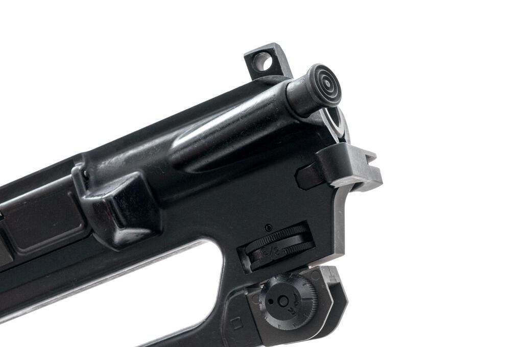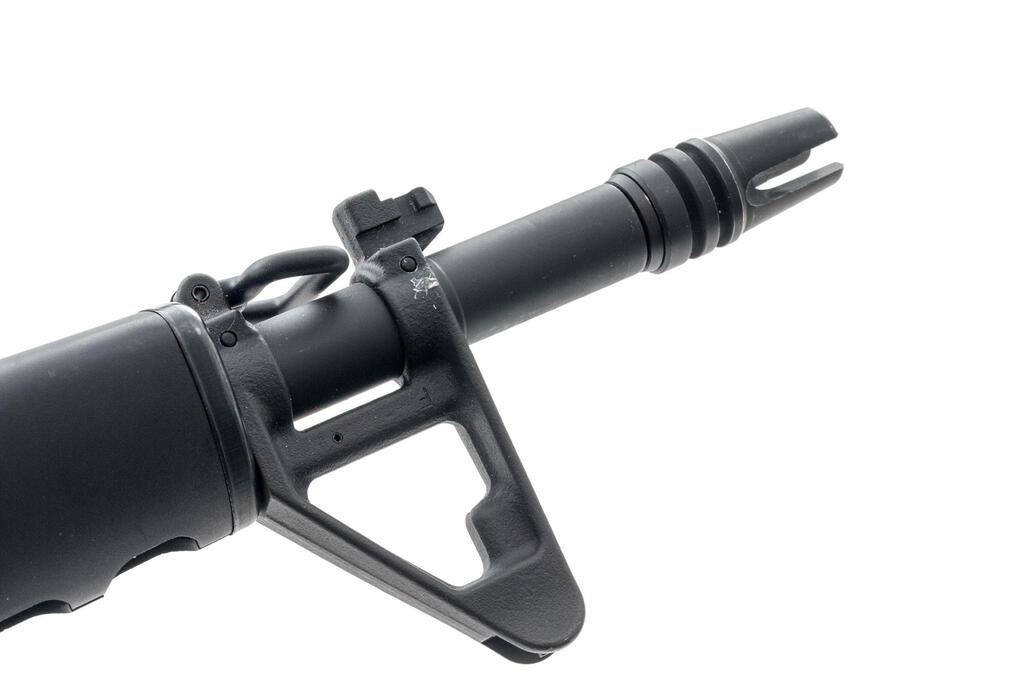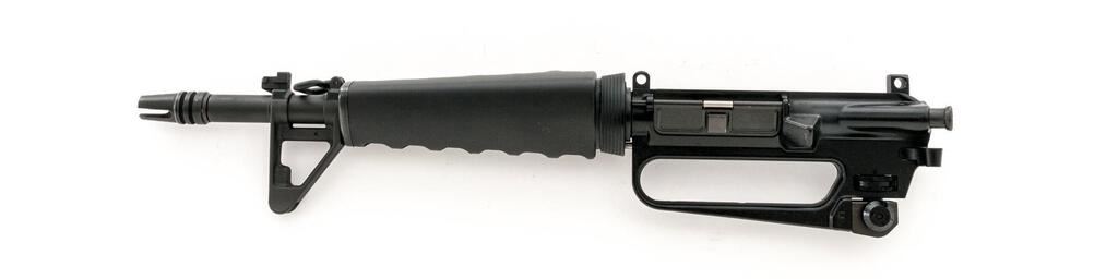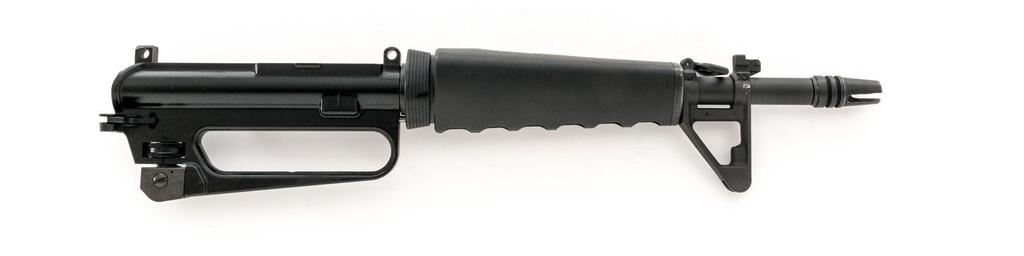 AR-15 Pistol Complete Carry Handle Upper Assembly, 5.56 cal., 13" Model 1 Sales chrome lined barrel including flash hider, parkerized finish, AR-15 style bolt carrier, A2 style rear sight with adjustable front post. Pistol length gas tube. Smooth black plastic hand guards. Barrel with 1-9 twist rate. Overall condition is excellent, appearing like new. Upper exhibits handling and storage marks. Bore is bright. Est.: $150-$250. (No FFL Required)