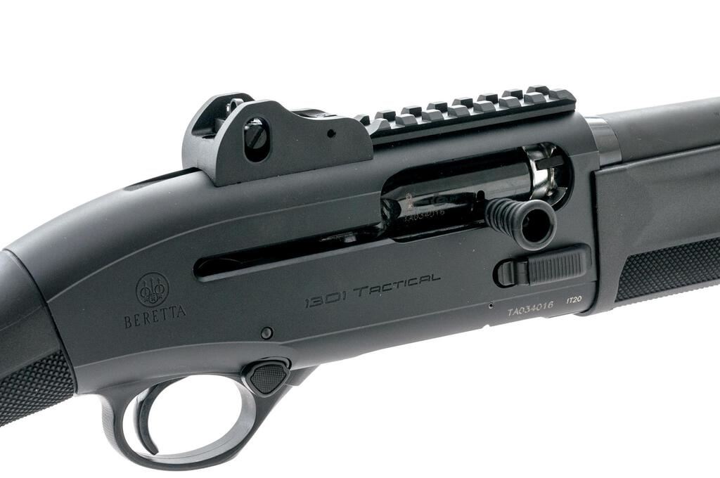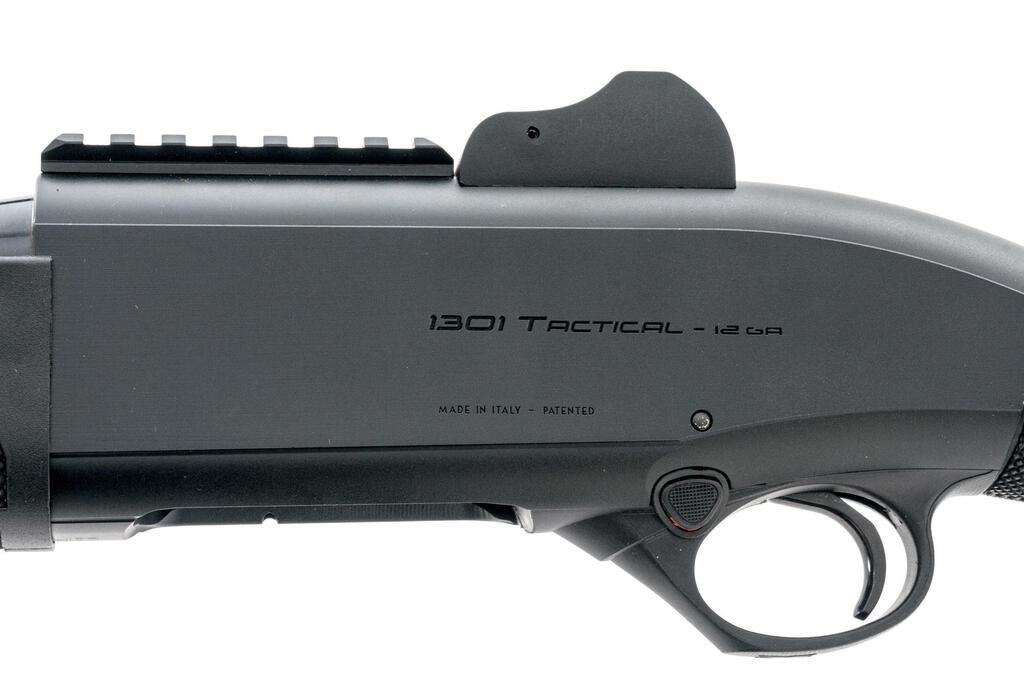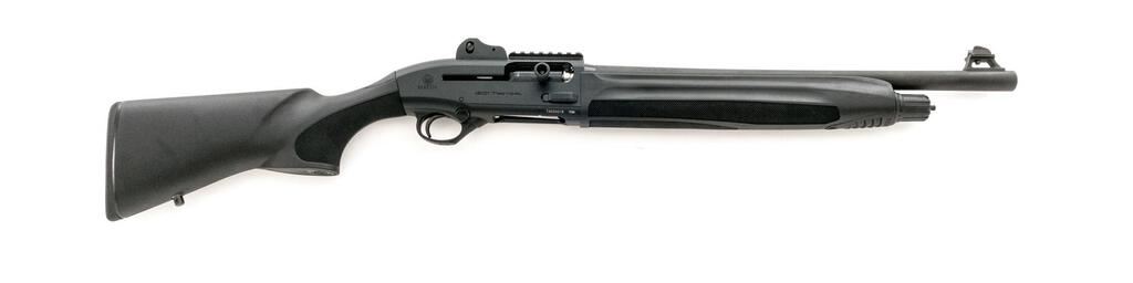 Beretta 1301 Tactical Semi-Automatic Shotgun, #TA034016, 12 ga., 18.5" barrel with tactical sights, 3" chamber, fitted for screw-in choke tubes, black plastic checkered pistol grip stock and black plastic checkered forend. Condition is excellent, appearing unfired. Includes black plastic Benelli hard case, choke tube wrench, two (2) magazine plugs to reduce capacity, safety instructions, and a stock spacer to increase length of pull. Est.: $900-$1,200. (Modern)