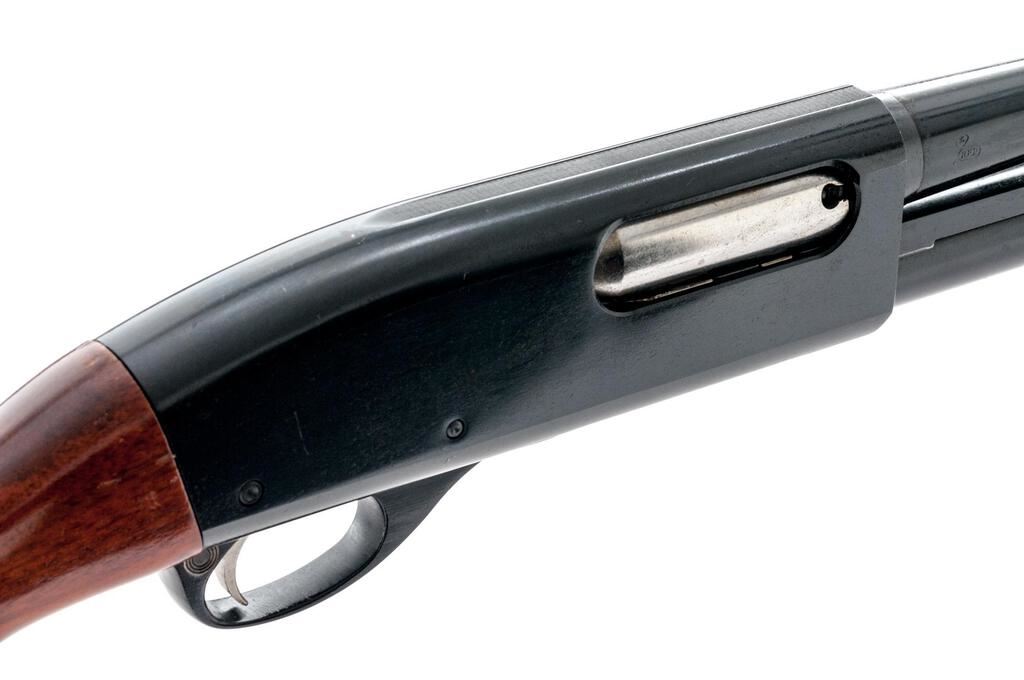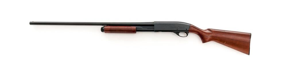 Remington Wingmaster Model 870 AP Field Grade Slide-Action Shotgun. 16 ga. 28" plain barrel has a 2-3/4" chamber and is choked Mod. The 870 action functions correctly. Ribbed forend and uncheckered pistol grip buttstock are red-hued walnut, with a standard Remington buttplate. Mfg'd 1957. Condition is very good showing light use, with several handling marks to wood but little carry wear to receiver; bore is mirror bright. Est.: $250-$350. (C&R)