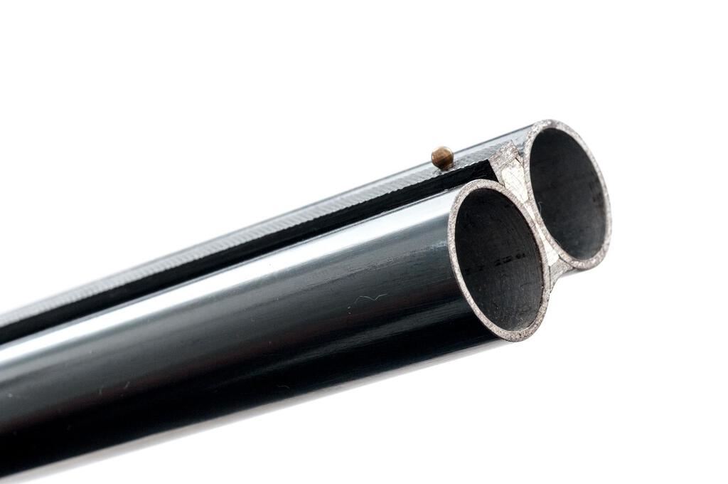 American Arms, Inc. York Model Side-by-Side Shotgun, #390443. 12 ga. 28" solid rib barrels have 3" chambers and are choked IC./Mod. The boxlock action has double underlug lockup and features double triggers, non-automatic safety, and plain extractors. The silvered receiver is lightly case hardened and roll engraved. The full forend and pistol grip buttstock are satin finished and well checkered, and have a black recoil pad mounted. Mfg'd approx. 1990s in Spain. Condition is near new, as used very little. Action is still quite stiff and functions correctly; bores are dirty but bright underneath. Est.: $350-$450. (Modern)