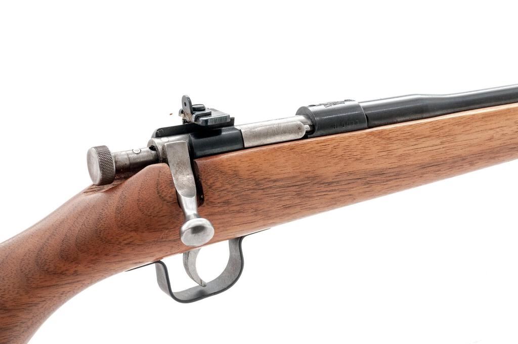Rouge Rifle Co. ''Chipmunk'' Single Shot Rifle, #H1477, .17 HMR cal., 16.25'' barrel, blue finish, walnut stock, fixed blade front sight and rear peep sight. Condition is near excellent retaining 98%+ blue finish. Stock with a few small handling marks and scrapes, the worst being on the right buttstock. Excellent action and bore. Bolt handle is in the white. Est.: $150-$250. (Modern)