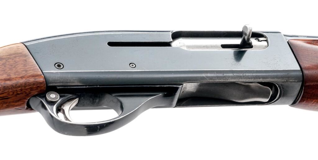 Remington Automaster Model 878 Semi-Automatic Shotgun, #18051L. 12 ga. 28" plain barrel has a 2-3/4" chamber and is choked Mod. The gas-operated 878 action is similar to the more deluxe Model 58, and both were superseded by the Model 1100. The full forend and pistol grip buttstock are uncheckered Field Grade walnut, with Remington buttplate. Mfg'd approx. 1960. Condition is very good with some handling marks to wood and edgewear to receiver but little wear to action, which closes tight and functions correctly; bore is mirror bright. Est.: $250-$350. (C&R)