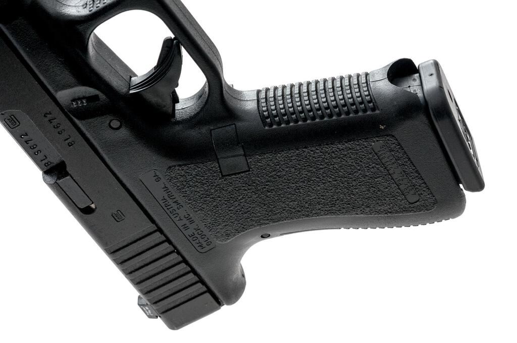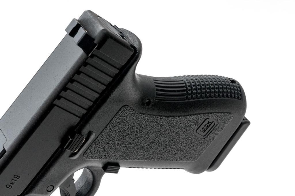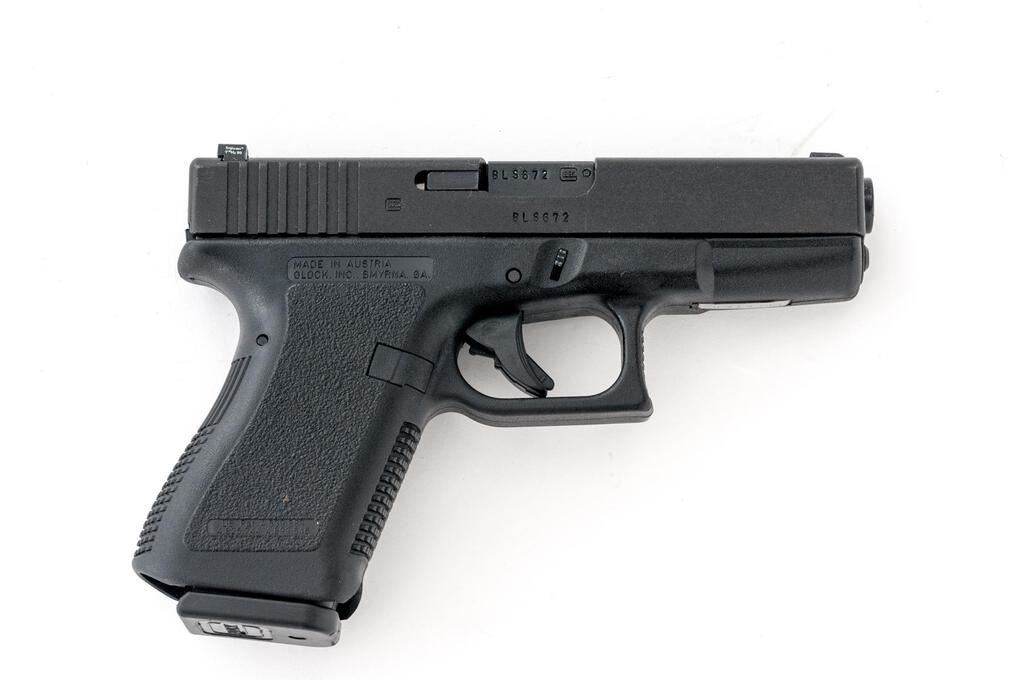 Glock Model 19 Gen 2 Semi-Automatic Pistol, #BLS672US, 9mm, 4.01'' barrel, matte black slide, black polymer frame, three-dot Trijicon night sights, with one 10-rd. Glock magazine. In non-matching black hard plastic Glock case. Condition is near excellent showing minimal handling and range use, there is a very light scratch showing on the left forward portion of the frame. Action is tight and smooth, excellent mirror bright bore. Night sights do not glow. Est.: $400-$600. (Modern/PPT)