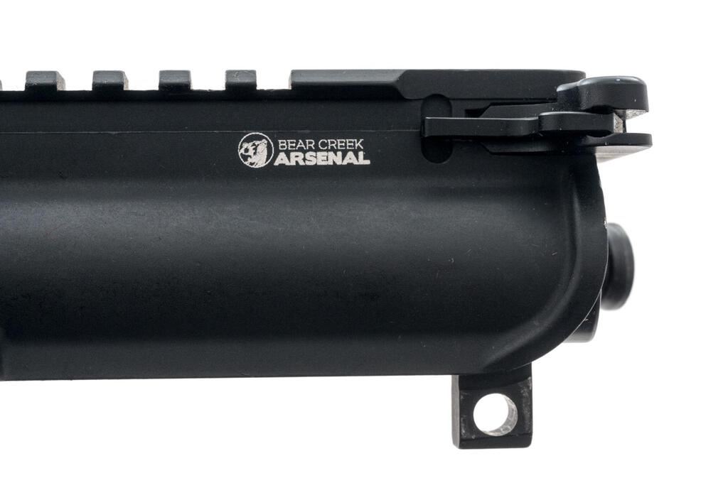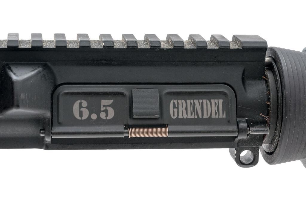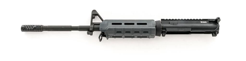 AR-15 Complete Upper Assembly, 6.5 Grendel cal., 18.25" M4 profile barrel including Battle Comp muzzle brake, parkerized finish, M-16 style bolt carrier with Grendel II bolt, flat top receiver with adjustable A2 front post. Carbine length gas tube. Barrel with 1-8 twist rate. Overall condition is excellent. Bear Creek Arsenal marked upper exhibits minor handling and storage marks. Magpul MOE handguards. Bore is bright but shows copper fouling, which will need to be cleaned. Est.: $200-$300. (No FFL Required)