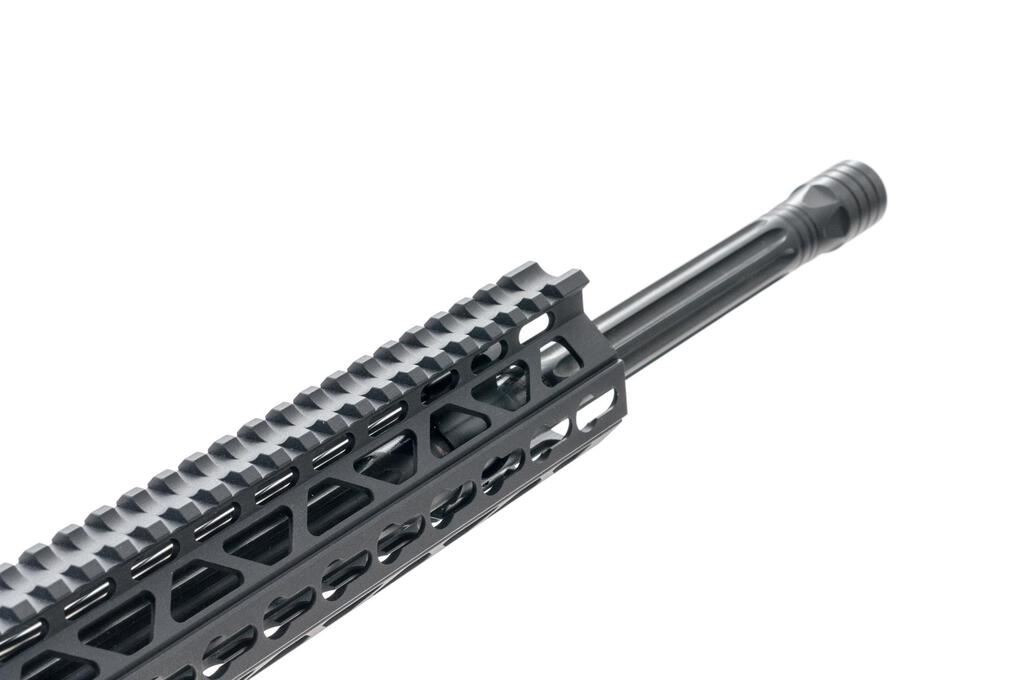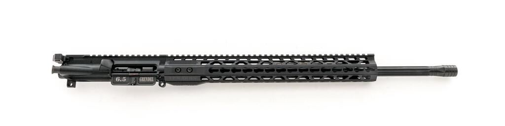TPM Arms AR-15 Complete Upper Assembly, 6.5 Grendel cal., 21" Match Series 5R nitride coated fluted barrel including muzzle device, parkerized finish on receiver and hand guards, M-16 style bolt carrier, MPI tested, flat top TPM Arms receiver. Rifle length gas tube. Barrel with 1-8 twist rate. TPM Arms Keymod aluminum hand guard. Bore is bright. Overall, in very good condition except for a small amount of surface rust on the outside of the barrel next to the gas block. Est.: $250-$400. (No FFL Required)