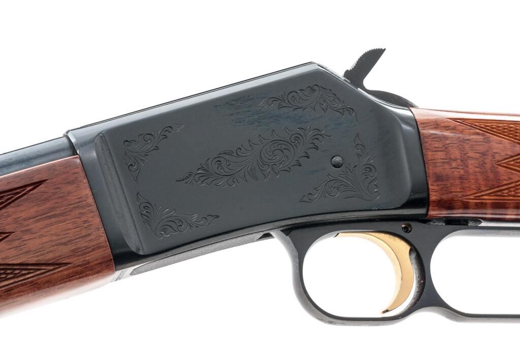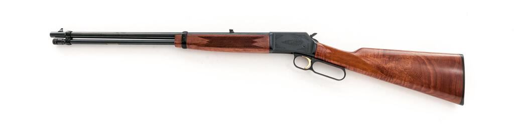 Browning BL-22 Grade II Lever Action Rifle, #70B23133, .22 S/L/LR cal., 20" barrel, factory dovetailed blade front and folding semi-buckhorn rear sights, full-length magazine, blue finish with scroll engraving, gold trigger, gloss-finished checkered American walnut straight grip two-piece stock with a hard plastic Browning marked buttplate. Mfg'd 1970. Rifle is in excellent overall condition showing little use with light handling marks only. Rifle retains approx. 99% factory finish with the barrel address reading "BROWNING ARMS COMPANY ST LOUIS Mo. & MONTREAL P.Q. / MADE IN JAPAN". Receiver shows tasteful scroll engraving and a gold trigger. Checkered American walnut stock features a high-gloss finish and is in excellent condition showing little use. Action is crisp, bore is bright and may be unfired. Est.: $600-$800. (C&R)