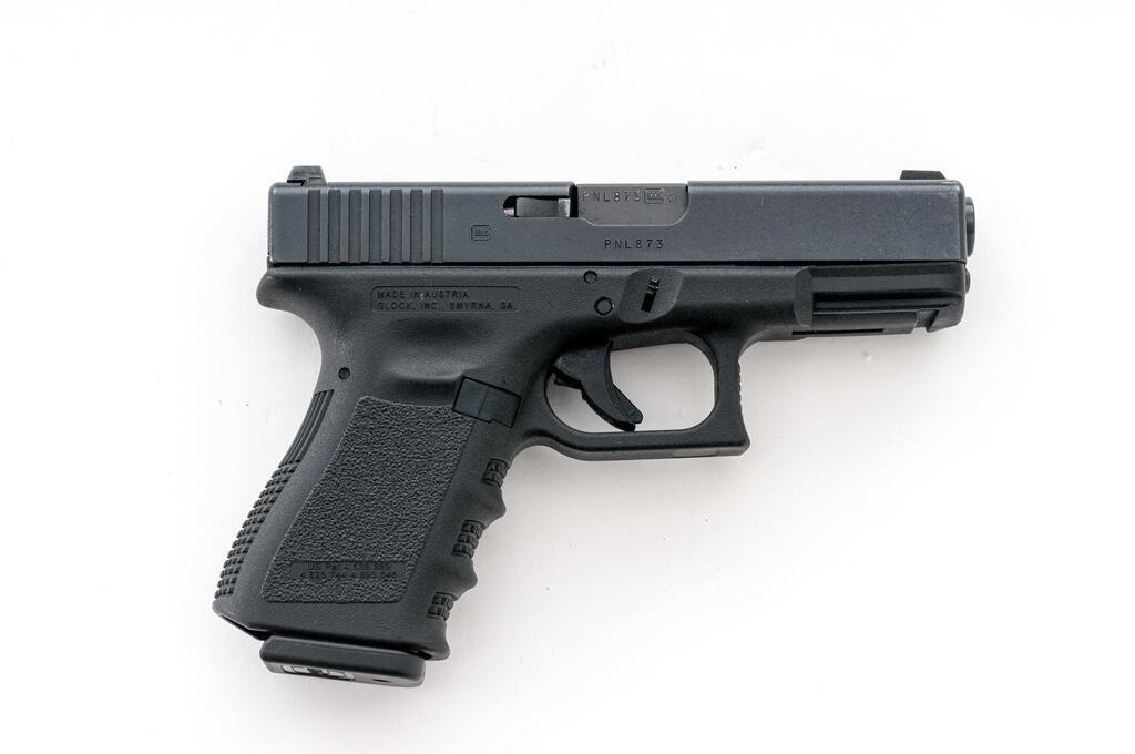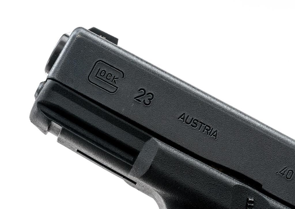 Glock Model 23 Gen 3 Semi-Automatic Pistol, #PNL873, .40 S&W cal., 4.02'' barrel, matte black slide, black polymer frame, Glock night sights, 2-dot rear with square notch and single dot front blade. Illumination on both sights is not working. Includes one 10-rd. Glock magazine. Condition is near excellent with minor handling marks. Smooth action and bright bore. Est.: $400-$550. (Modern/PPT)