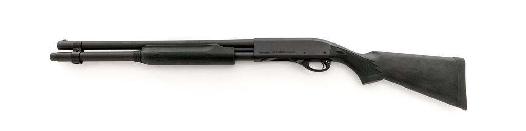Remington 870 Express Magnum Pump Action Shotgun, #AB265340M, 12 ga., 20'' barrel choked Cyl. bore, 2-3/4" or 3" chamber, phosphate finish, synthetic stock, with factory black rubber butt pad. Extended magazine tube brings total capacity to seven (7) rounds. Overall condition is excellent showing little use, bore is mirror bright. Est.: $350-$500. (Modern)