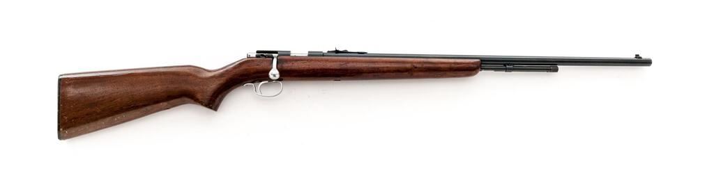 Winchester Model 72A Bolt Action Rifle, NSNV, .22 S/L/LR cal., 25" barrel with a half magazine, silver bead blade front and standard elevator rear sights, blue finish, chrome bolt, smooth walnut one-piece stock with a checkered plastic Winchester marked buttplate. The Models 72/72A were produced from 1938-1959. Rifle is in very good to near fine overall condition retaining approx. 90%-93% original factory blue finish, with light scratches and wear at the muzzle. Receiver is factory grooved with sharp markings including crisp Winchester "WP" proofs on the barrel and front ring. Smooth wood stock is very good with light scratches and small mars consistent with field use. Action works smoothly, bore is good with defined rifling. Est.: $200-$300. (C&R)