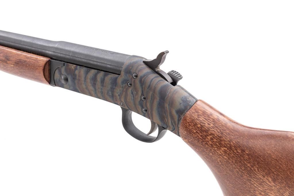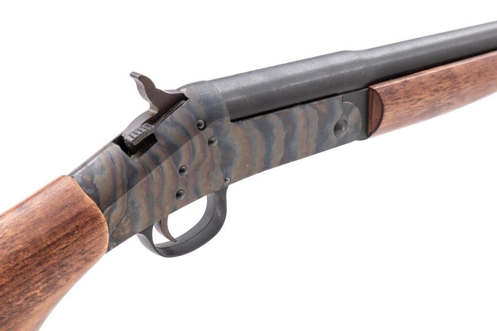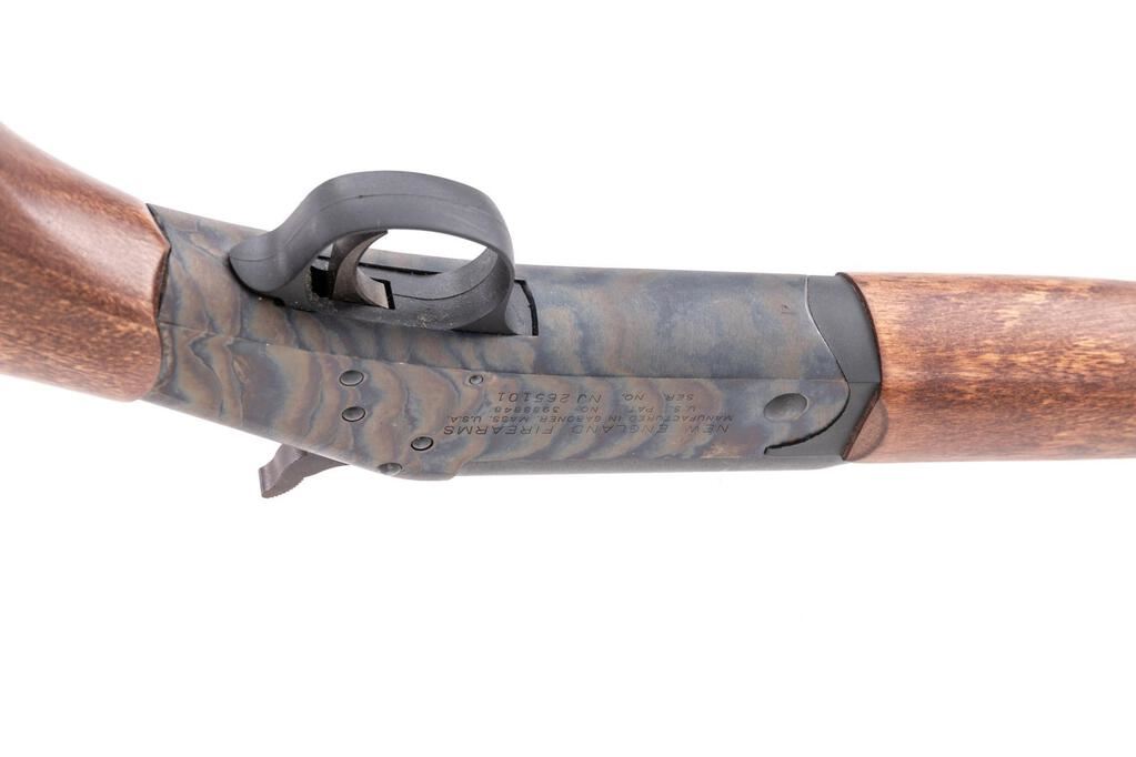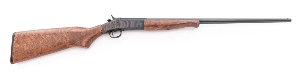 New England Firearms (NEF) Pardner Model SB1 Single Shot Shotgun, #NJ265101, .410 ga., 26" barrel, brass bead front sight and no rear sight, blue and case hardened finish, smooth wood two-piece pistol grip stock, beautifully case hardened receiver and Schnabel forend. Shotgun is in near excellent overall condition retaining approx. 96%-98% blue and case colored finish, showing only light handling marks and little use. Smooth wood stock is very good with handling and storage marks only. Buttstock ends with a hard plastic NEF marked buttplate providing a 14.25" LOP. Action locks up tightly, bore is very good. Est.: $150-$300. (Modern)
