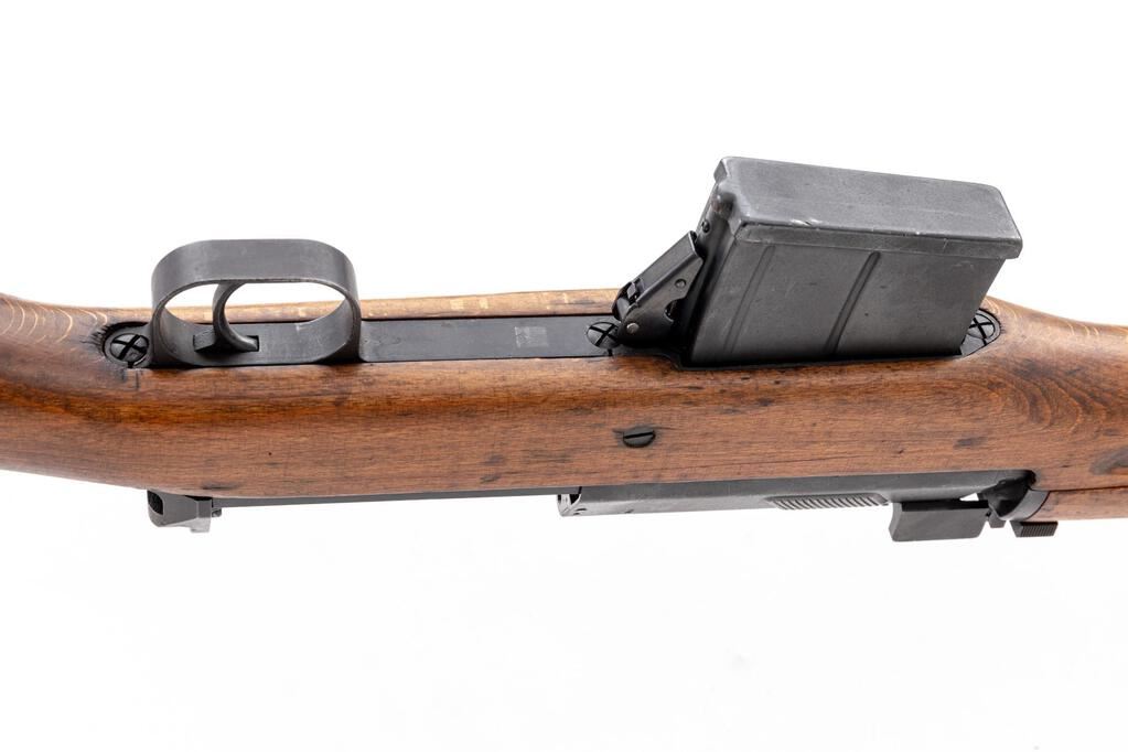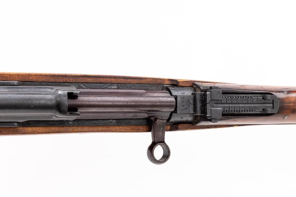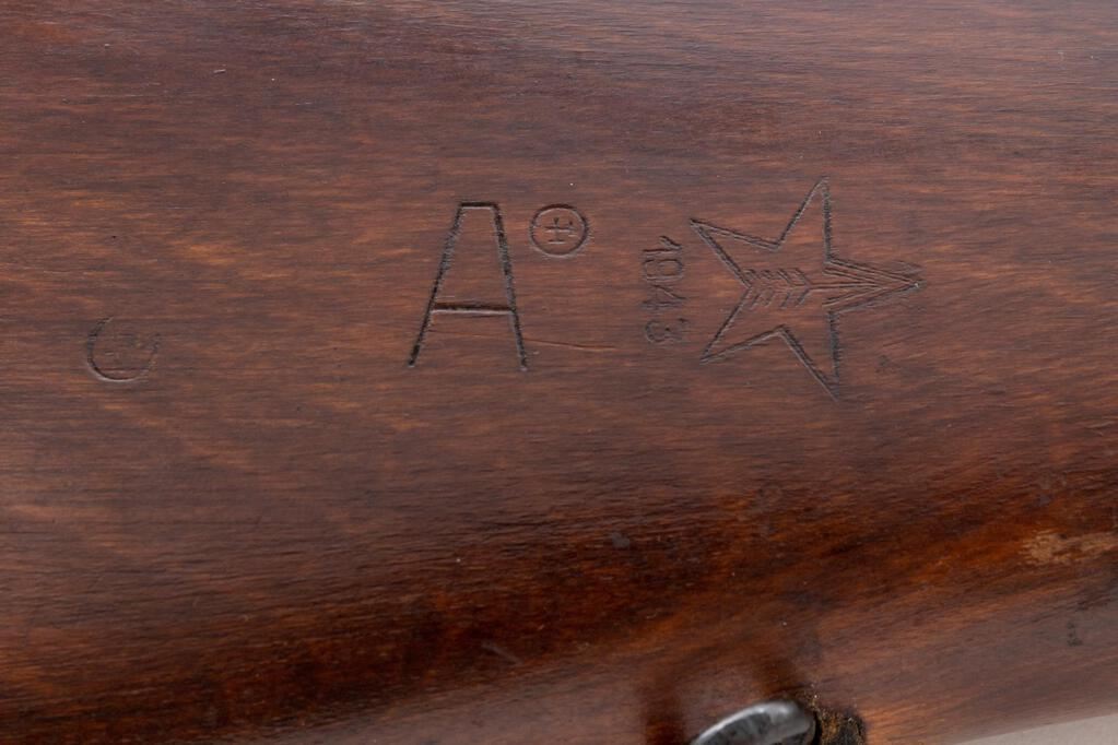 Soviet SVT-40 Semi-Automatic Rifle, #TM6657, 7.62x54Rmm, 24.6" barrel, blued finish, birch wood stock set, hooded post front sight and adjustable leaf rear sight. Cleaning rod mounted under barrel. One 10-rd. magazine is included. Marked on top of chamber flat with five-pointed star and "1941" later over stamped with a refurbishment mark. Right side buttstock stamped "A/1943/(fletched arrow)" inside five-pointed star. Matching number engraved on top of bolt handle, underside of bolt, bottom of trigger guard, and stamped into left side of buttstock. Magazine marked with two mismatched numbers on left side. Condition overall is very good with the metal retaining approx. 85% finish, showing small spots of patina to the top of the receiver cover. Wood is very good showing gouges, handling marks, and scuffs to the shellac finish. Action operates smoothly; bore has darkening in the grooves, otherwise the bore is good with good rifling. No visible import marks. Est.: $1,800-$2,400. (C&R/PPT)