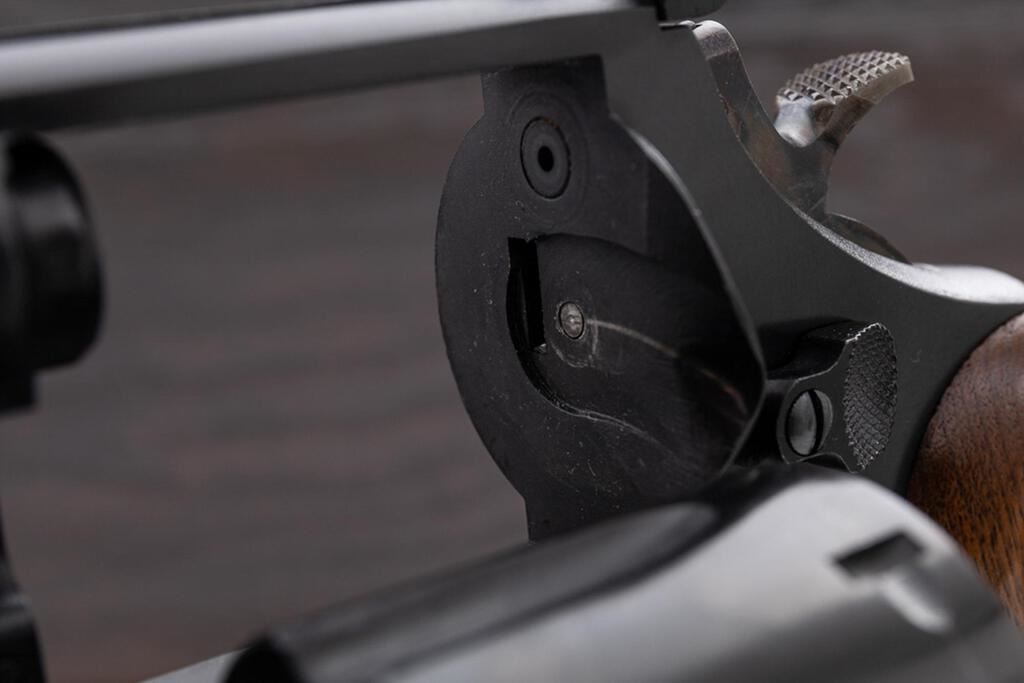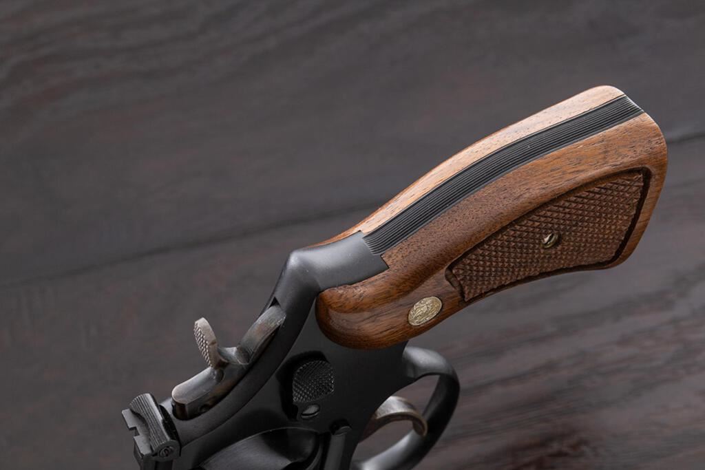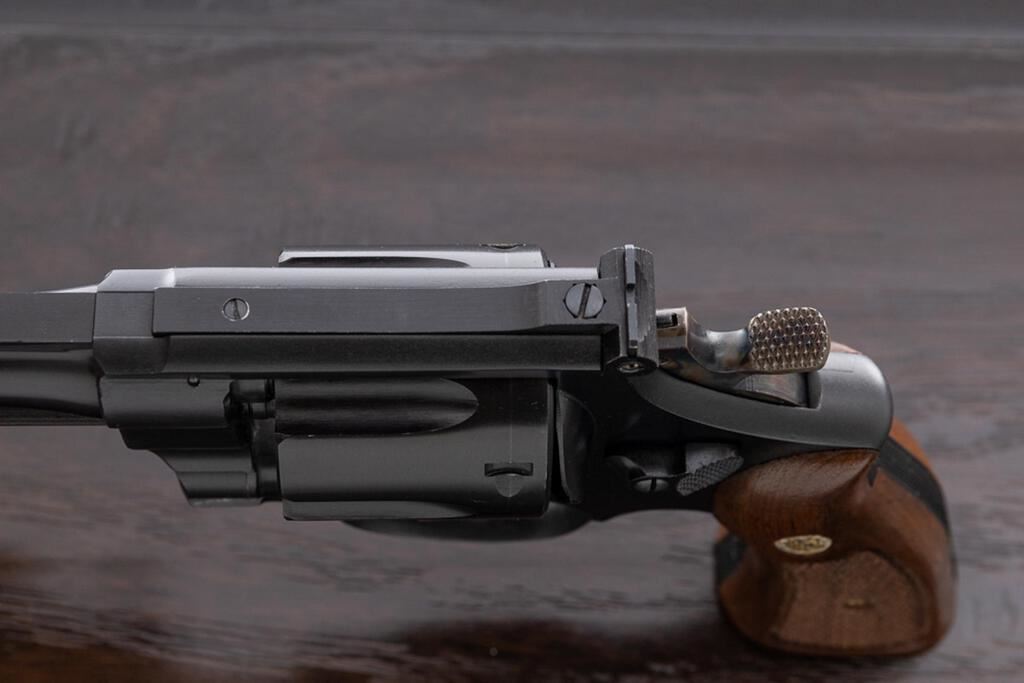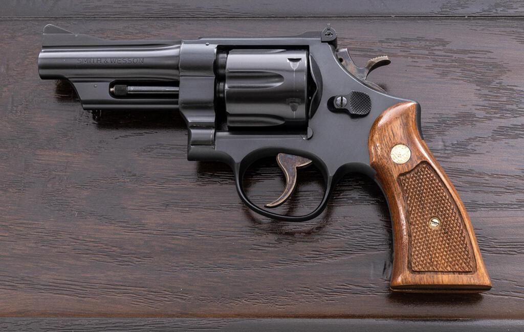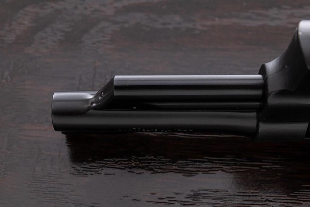 Smith & Wesson Model 28-2 Highway Patrolman Double Action Revolver, #N175302, .357 Magnum cal., 4" pinned barrel, matching numbered checkered walnut magna grips, ramped blade front sight, square-notched rear sight that is adjustable for windage and elevation, color case hardened serrated trigger, and semi-target hammer. Mfg'd ca. 1973. Condition is excellent retaining approx. 98% factory blue, with slight wear at the muzzle. Factory lettering is crisp. Case colors are vibrant. Grips with a few tiny indentations and little finish wear to the lower edge of the left grip, checkering is sharp. Action cycles smoothly and locks up securely. Chambers and cylinder face are clean, appearing little used. Bright bore with well-defined rifling. Est.: $700-$900. (Modern/PPT)