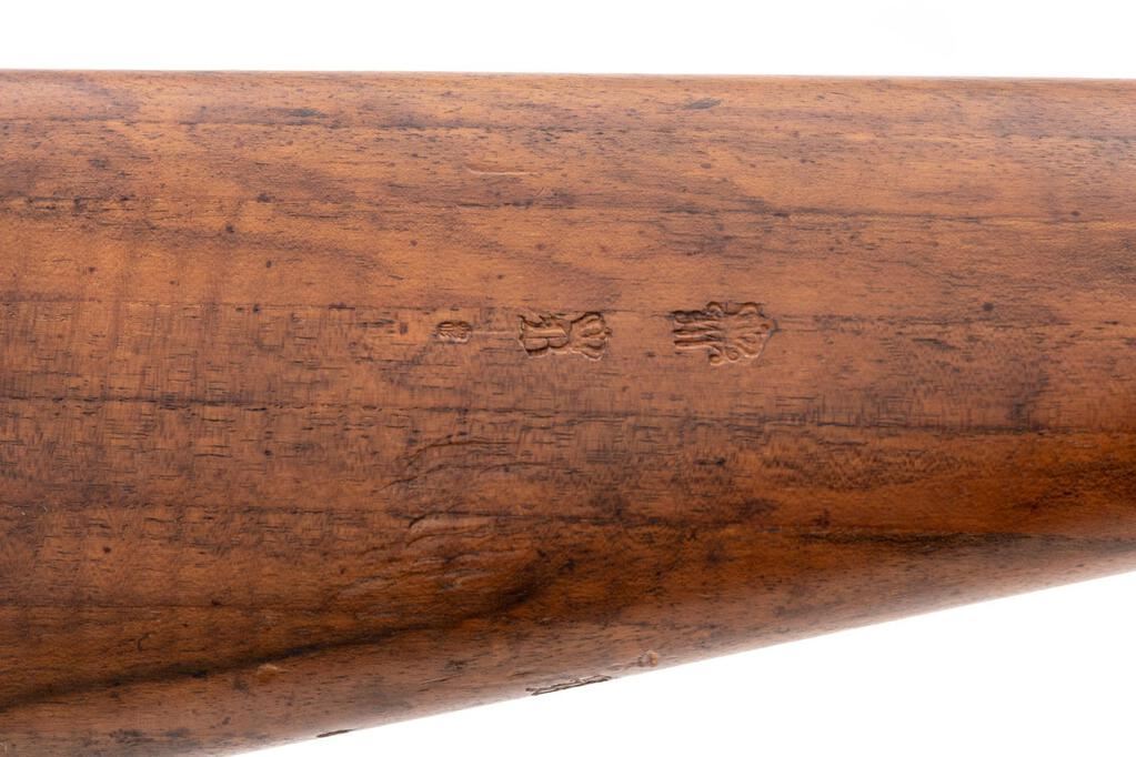 German Model 71/84 Spandau Mauser Bolt Action Rifle, #4828, 11mm x 60mm Mauser cal., 31.56" barrel, blued and in-the-white finish, drift adjustable inverted "V" fixed front sight and tangent rear sight adjustable to 1600 yards, Imperial German proof marks, with 8-rd. tubular magazine. Dated 1888, made at the Spandau Arsenal, selector for single shot or magazine feed, all visible numbers matching, straight grip walnut stock with three barrel bands, front band with side bayonet lug, stacking rod, and steel buttplate. Condition is excellent retaining most all of its original blued finish on the barrel, with some dried grease residue, scratches on the upper two barrel bands, freckling on the trigger guard strap, and light scratches and dings on the trigger guard bottom and sides. Receiver and bolt are in the white and show dried grease residue, light freckling, and minor age graying. Action and safety function properly, but a bit sticky due to the dried grease; bore is bright, with light soiling that should clean to very good. Stock shows minor dings, scratches, scuffs, and clear stamped proofs and markings. Buttplate shows light rust spots and dried grease residue. Most of these 71/84 Mausers did not see much action, and this example is in mostly unissued condition after 130 years. Est.: $1,000-$1,500. (Antique)