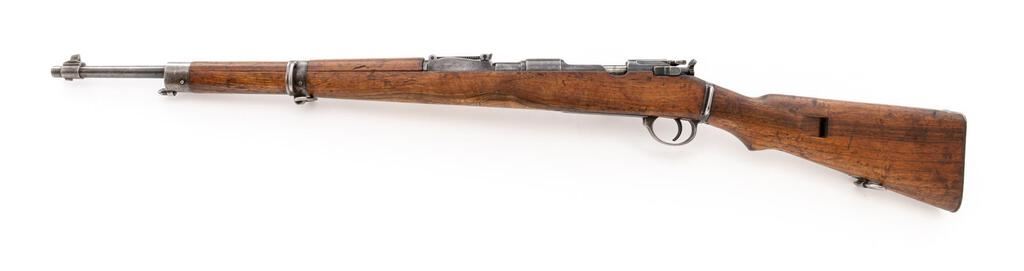 -Hungarian Model 43M Mannlicher Bolt Action Rifle, #A-13973, 8x57mm, 23.6" barrel, blued finish, two-piece hardwood stock, inverted "V" front sight without hood and adjustable tangent rear sight. Marked on top of receiver ring "43M". Barrel shank stamped with St. Stephens crown acceptance stamp. Matching numbers except bolt assembly. Condition overall is very good with the metal retaining less than 60% finish, showing rust and patina on the bands and exposed barrel. Most of the finish appears worn from the stock, otherwise the wood is very good showing impressions, dents and handling marks. Action operates smoothly; bore is dark in the grooves, otherwise good with good rifling. No visible import marks. Est.: $800-$1,100. (C&R/PPT)