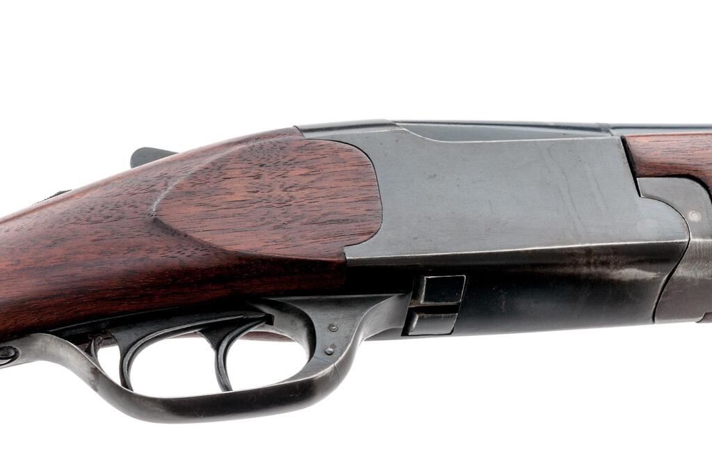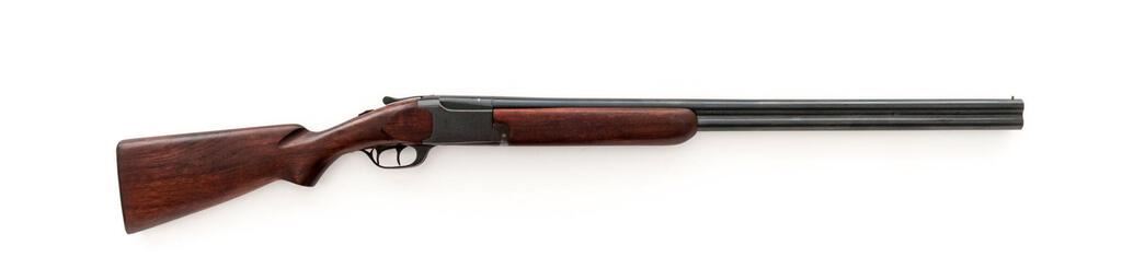 Ranger Model 103-1 Field Grade Over/Under Shotgun, NVSN. 12 ga. 30" plain barrels have 2-3/4" chambers and are choked IC./Full. The boxlock action features double triggers, non-automatic safety, and plain extractors; receiver is unengraved. The full forend and pistol grip buttstock are oil-finished walnut, unchecked, with a plastic buttplate installed. Mfg'd approx. 1950's. Condition is very good, with few marks to wood and moderate wear to action, which closes tight and functions correctly; bores are very good. Est.: $250-$350. (C&R)