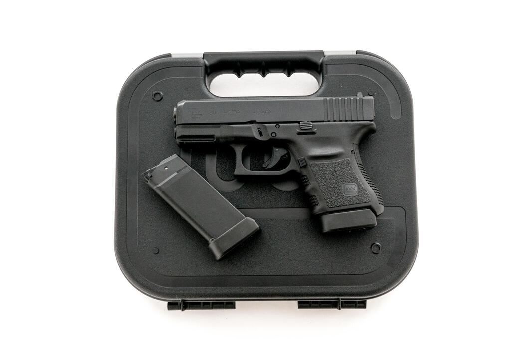 Glock Model 30 Gen 3 Semi-Automatic Pistol, #NKU454 .45 ACP cal., 3.77'' barrel, matte black finish, black polymer frame, white dot front sight and white outline rear sight, with two (2) 10-rd. Glock magazines. In non-matching Glock case with owner's manual, lock, and cleaning accessories. In excellent condition, appears minimally fired. Smooth action and mirror bright bore. Est.: $400-$600. (Modern/PPT)