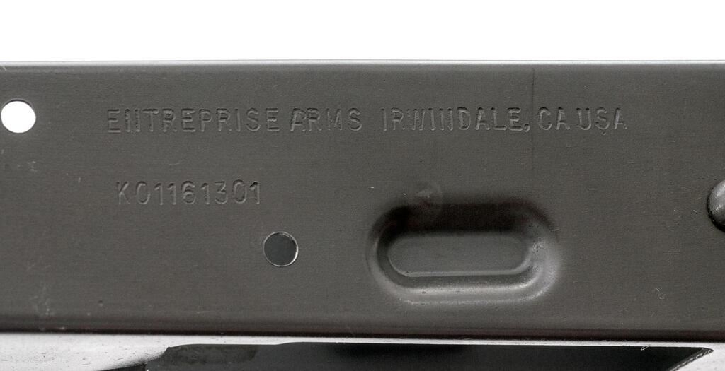 Enterprise Arms AK47 Receiver, #K01161301, parkerized finish, never built, in excellent condition. Interior rear of receiver has a slight loss of finish, looks like it is from a test fit of a rear trunnion. We do not know which models of the AK this will fit. Please look at shape and hole positions to determine if this is correct for your build. Est.: $75-$125. (Modern/PPT)