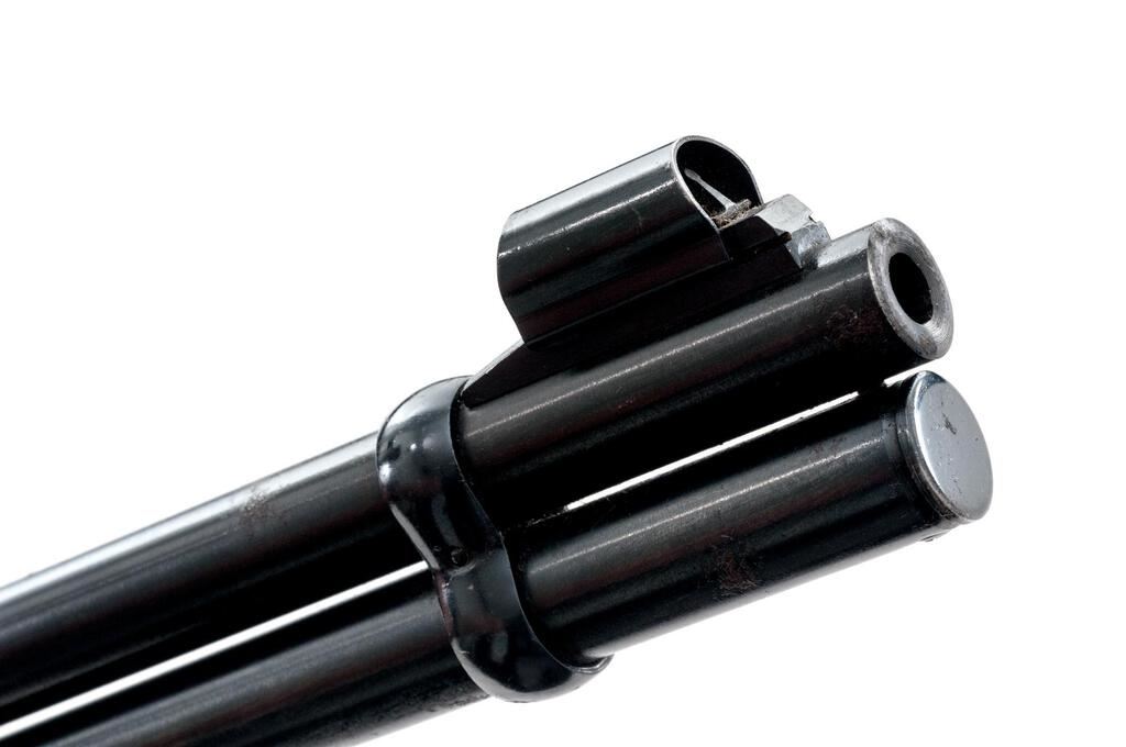 Winchester Model 94 Lever Action Saddle-Ring Carbine, #4189918, .30-30 Win. cal., 20" round barrel with a full-length magazine, hooded ramped blade front and semi-buckhorn rear sights, blued barrel and magazine with case-colored receiver, smooth walnut two-piece straight grip stock with a checkered plastic Winchester marked shotgun buttplate. Mfg'd 1975. Carbine is in fine overall condition retaining approx. 90%-92% factory finish on the barrel and magazine. There is light surface rust at the muzzle and around the front sight. Receiver shows muted case coloring with light scroll engraving and the saddle ring retained. Markings are crisp with Winchester "WP" proofs on the front ring and barrel. Smooth walnut stock is very good with several small mars and compressions. There is a larger mark on the left side below the tang at the wrist. Action is crisp, bore is very good. Est.: $600-$800. (Modern)
