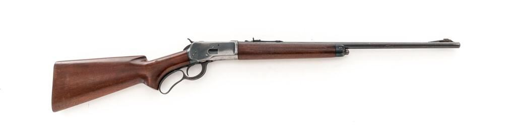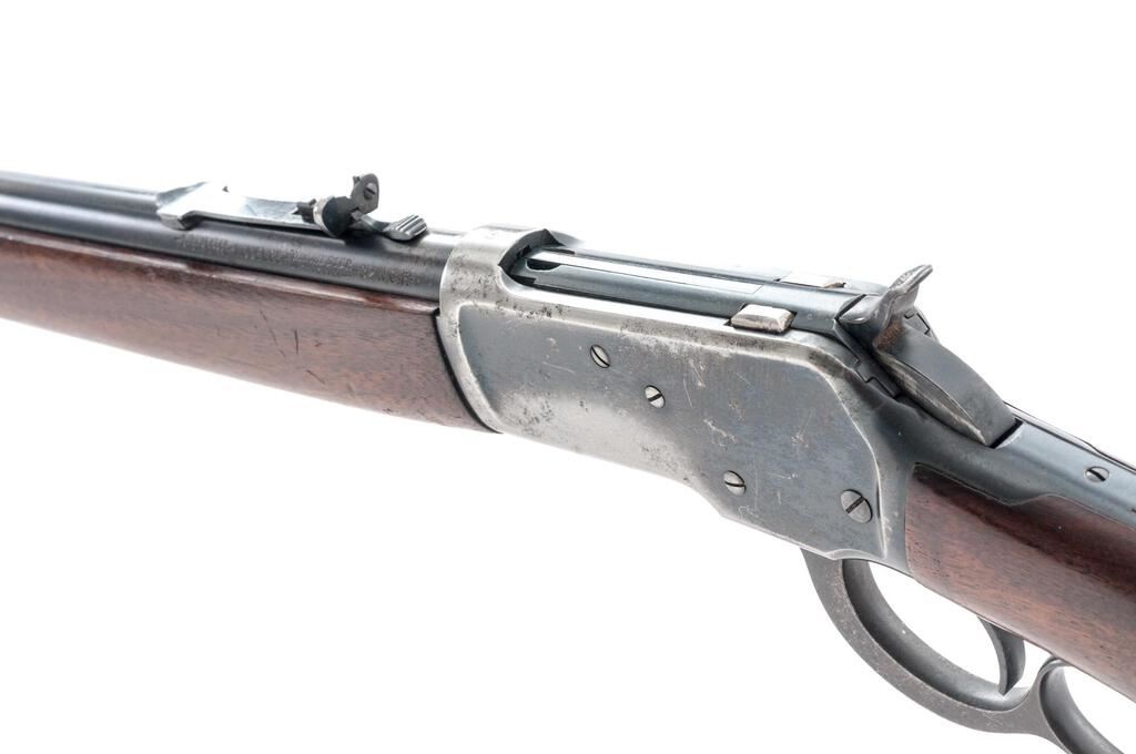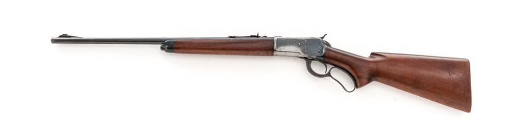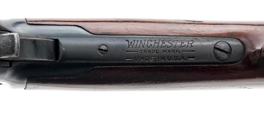 Winchester Model 65 Lever Action Rifle, .32 WCF cal., #1006860, 22" round barrel, steel bead factory dovetailed blade front and semi-buckhorn rear sights, blue finish, smooth walnut two-piece pistol grip stock, button magazine. Mfg'd 1941. Rifle is in very good overall condition. Barrel and button magazine retain approx. 80%-85% thinning factory blue with scratches and wear at the muzzle consistent with field use. Receiver retains 40%-50% thinning finish going to gray patina with considerable blue on both top and bottom tangs, the bolt and loading gate. There are Winchester "WP" proofs on the barrel and front ring. Stock is very good with small mars and handling marks. Wood-to-metal fit is very good. Buttstock ends with a widow's peak checkered steel buttplate providing a 13" LOP. Action is crisp, bore is good with sharp rifling. The Model 65 was a design evolution of the Model 53 with a total production of only 5,700 rifles produced. Est.: $1,000-$1,200. (C&R)