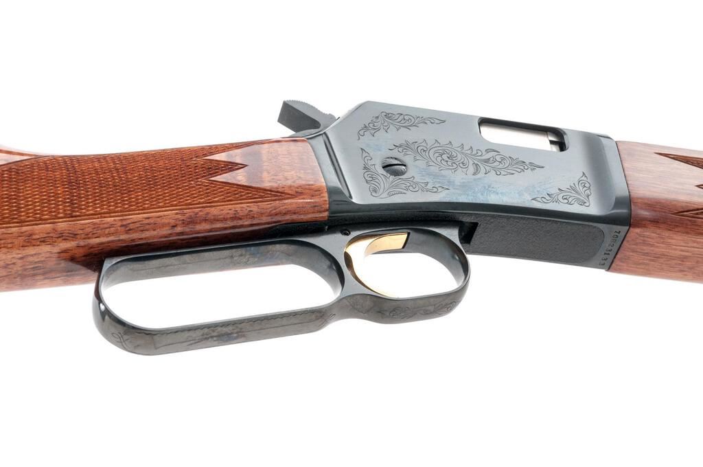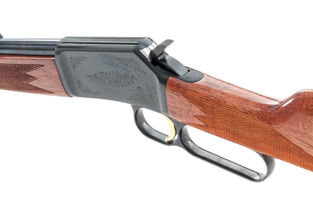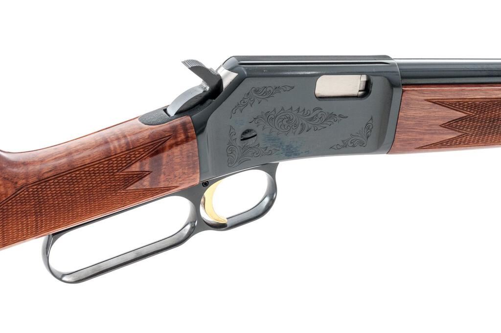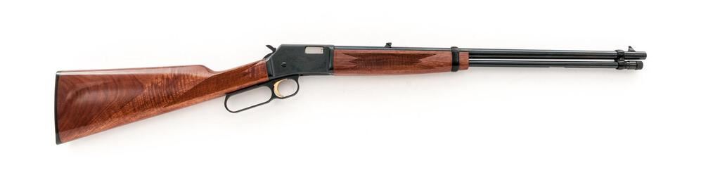 Browning BL-22 Grade II Lever Action Rifle, #70B23133, .22 S/L/LR cal., 20" barrel, factory dovetailed blade front and folding semi-buckhorn rear sights, full-length magazine, blue finish with scroll engraving, gold trigger, gloss-finished checkered American walnut straight grip two-piece stock with a hard plastic Browning marked buttplate. Mfg'd 1970. Rifle is in excellent overall condition showing little use with light handling marks only. Rifle retains approx. 99% factory finish with the barrel address reading "BROWNING ARMS COMPANY ST LOUIS Mo. & MONTREAL P.Q. / MADE IN JAPAN". Receiver shows tasteful scroll engraving and a gold trigger. Checkered American walnut stock features a high-gloss finish and is in excellent condition showing little use. Action is crisp, bore is bright and may be unfired. Est.: $600-$800. (C&R)