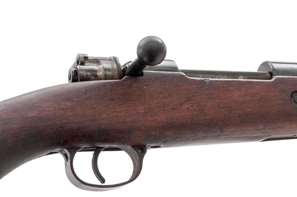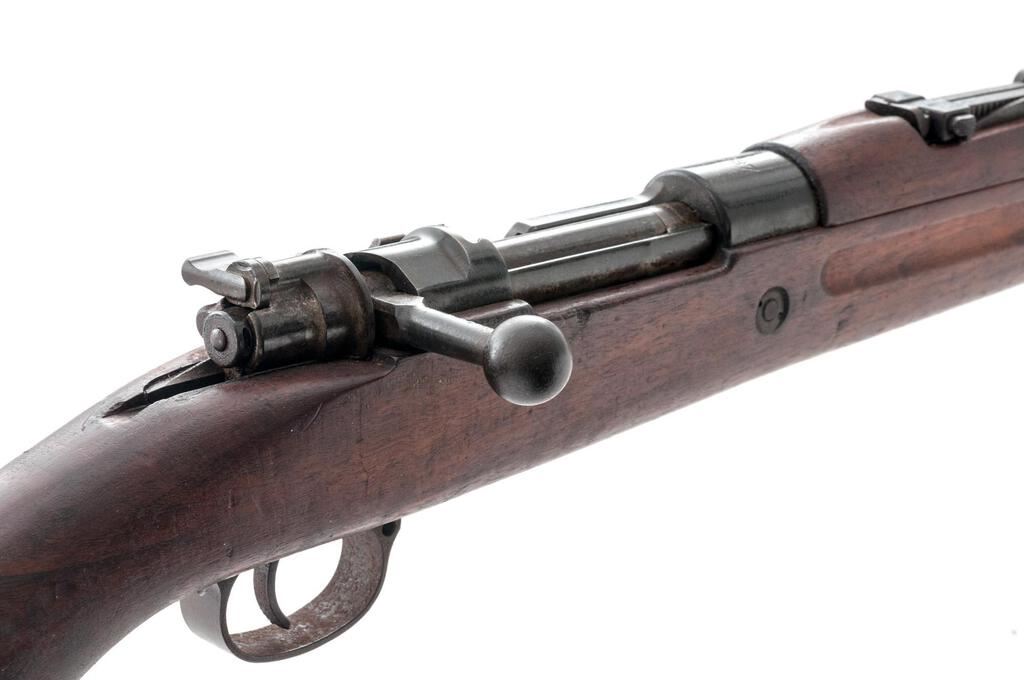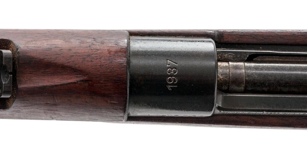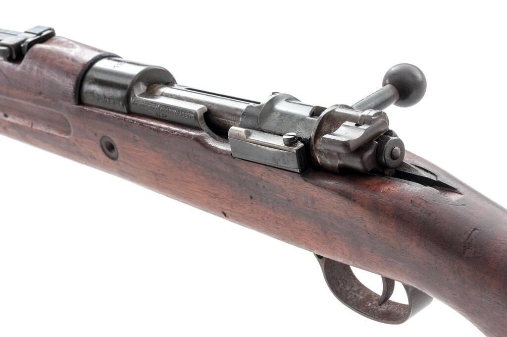 Czech VZ-24 Mauser Bolt Action Rifle, #P47808, 8x57mm, 23.6" barrel, blued finish, hardwood stock set, inverted "V" front sight and adjustable tangent rear sight. Missing cleaning rod. Marked on top of receiver ring "1937", and "CESKOSLOVENSKA ZBROJOVKA, A.S, BRNO" on left side receiver rail. Matching numbers on bolt handle and stock. Condition overall is good. Most of the metal is covered by some amount of patina and overall darkening. Forend has a closed crack under the bolt handle, otherwise the wood is good, showing some dark areas and light handling marks. Action operates smoothly, bright bore is excellent with sharp rifling. No visible import marks. Est.: $400-$600. (C&R)