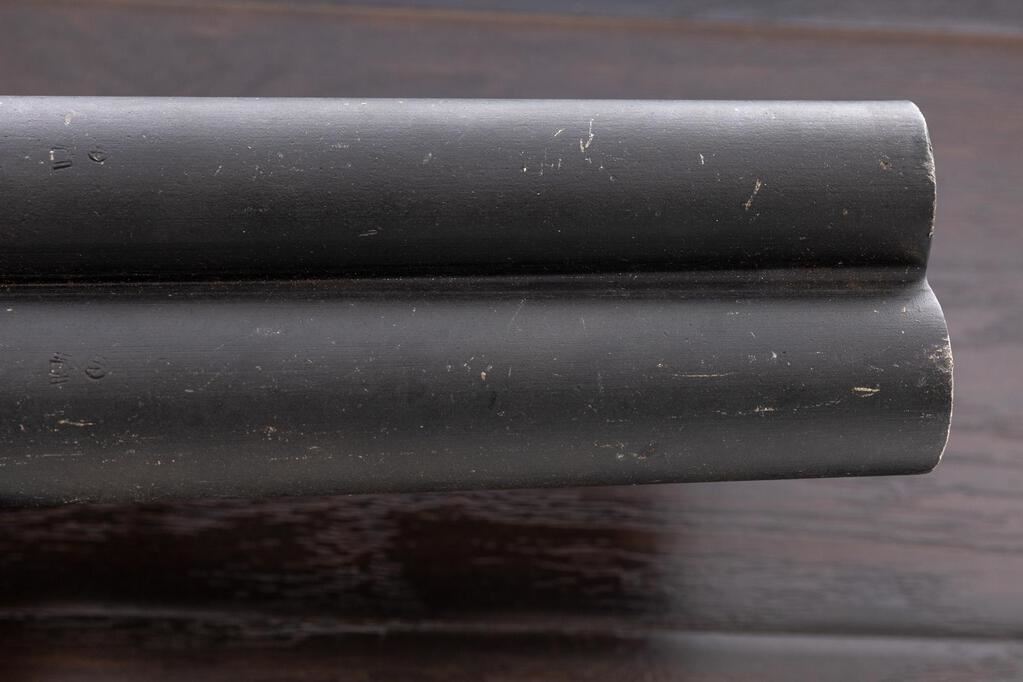 WWII German Luftwaffe Double Barrel Aluminum Flare Pistol, #F1 24483, 26.5mm (4 bore) cal., 6.5" barrels, black dull finish, underlever cocking mechanism, side safety lever, cocking indicators, lever for firing right or left barrels, maker marked "fzs" for Krieghoff Firearms Co., dated 1943, brown Bakelite checkered grips, Luftwaffe eagle acceptance stamps and "4" in a circle marks on top of barrels. Condition is very good retaining most of its black anodized finish, with minor scratches and light dings, oxidation to the various screws, levers, and small parts. Cocking action is a little sluggish and may need lubrication; bores show light pitting marks near the middle and front. Grips show a few scratches and dings, mainly on the bottom edges. Est.: $600-$900. (Non-gun)