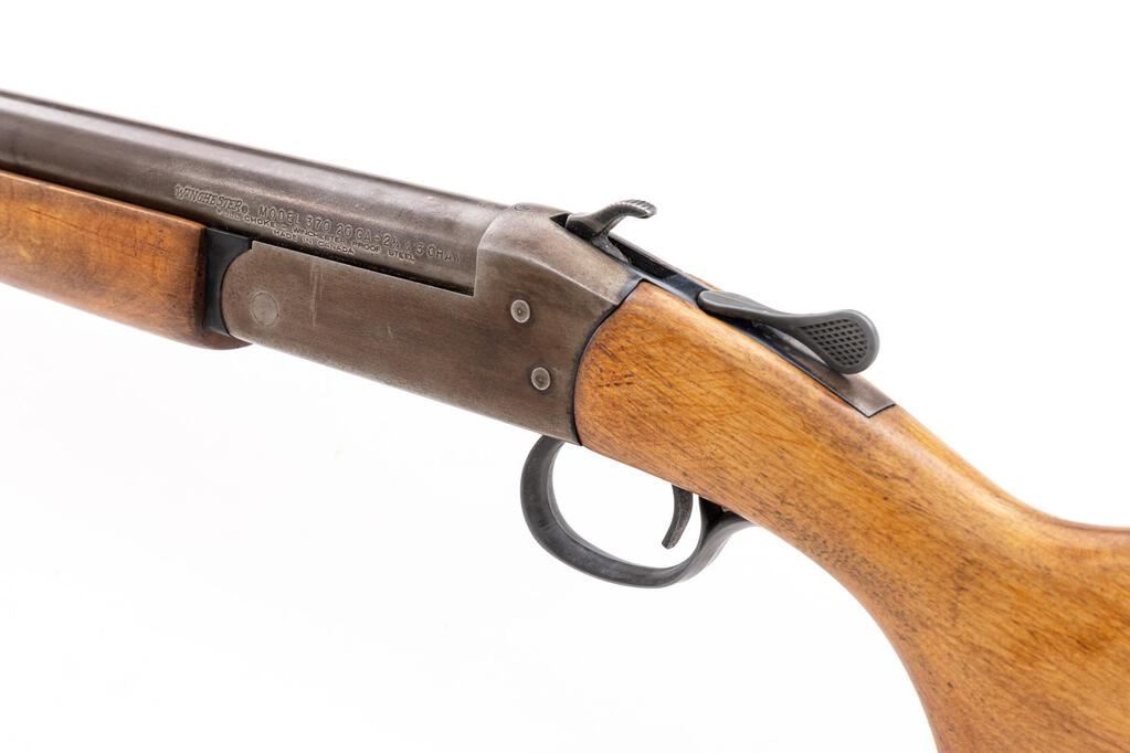 Winchester Model 370 Single Shot Shotgun, NSNV, 20 ga., 28" barrel with a brass bead front sight, blue finish, smooth wood two-piece pistol grip stock with a ribbed plastic buttplate. Mfg'd between 1968-1973 at Winchester's Canadian plant in Cobourg, Ontario. Shotgun is in good overall condition, with the metal surfaces having gone to an even brown patina showing sharp markings. Stock is in very good condition with good wood-to-metal fit. The ribbed plastic buttplate provides a 14" LOP. Action locks up tight, bore is good. Est.: $150-$250. (C&R)