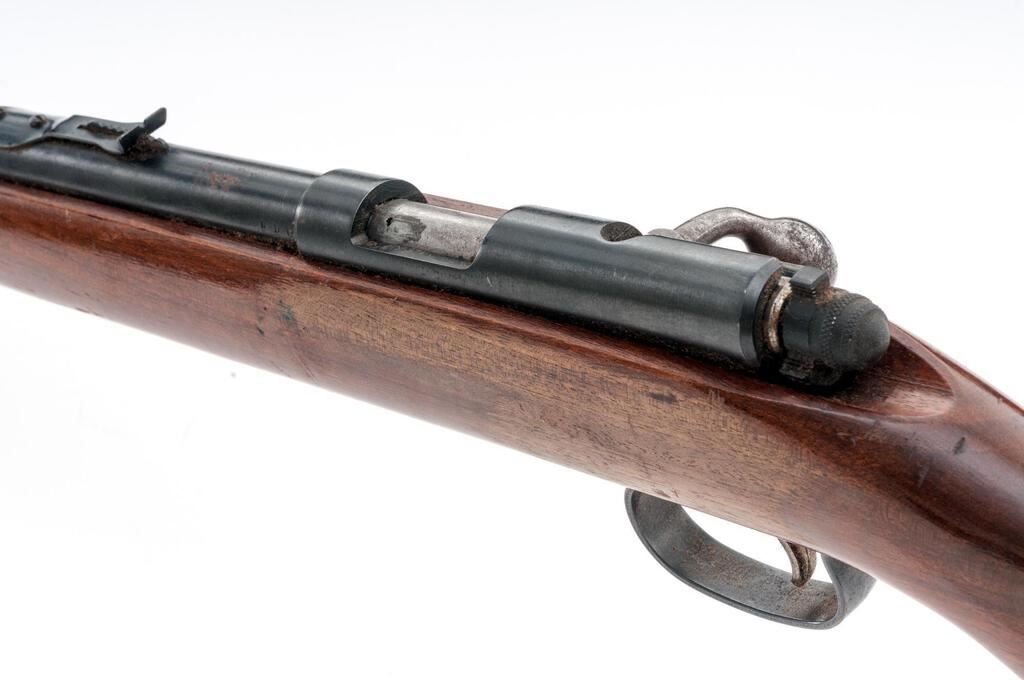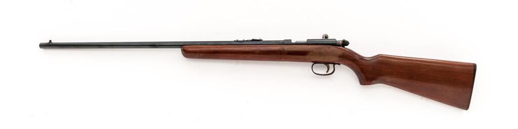 Remington Model 514 Single-Shot Bolt Action Rifle, NVSN, .22 S/L/LR RF cal., 25" round barrel, dovetailed beaded blade front and adjustable leaf rear sights, marked with maker's name, address, pat. no., logo, model and caliber on top; receiver with polished turn-down bolt, rear safety-knob; oil-finished walnut halfstock has loop trigger guard, checkered hard rubber buttplate with circular Remington logo. Mfg'd with full-blued finish. Condition is very good retaining approx. 70% blue with scattered rust erosion and bright bolt. Sound stock with scattered use marks, approx. 1.5"x5.5" sanded area at left-side receiver, and very good finish. Action is crisp, bore is bright with fine rifling. Est.: $150-$300. (C&R)