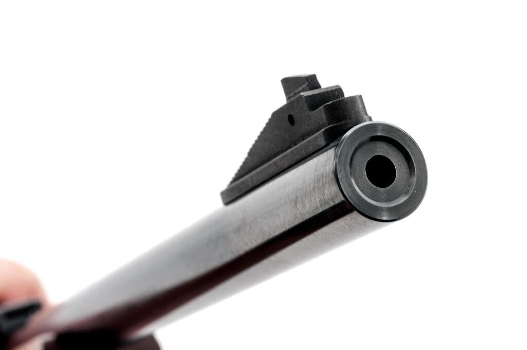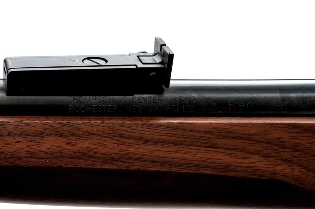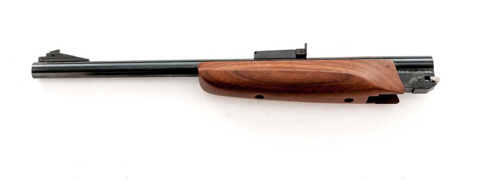 Thompson Center Contender Factory Barrel, .22 Rem Jet Mag. cal., 16.25" blued barrel, standard ramp front sight with adjustable rear sight, hardwood forend. Condition is near excellent with blued finish, showing only minor handling marks and a small area of pitting on the right rear just above the lug. Factory lettering is clear and crisp. There is a possible serial number "704960" electro-penciled on the left side of the lug, and "40 7/16/08" on the right. Forend is near excellent with only minor handing marks. Bore is bright. Est.: $200-$350.