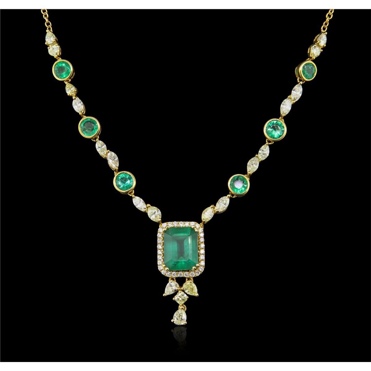 #12 Lot 11 18KT Yellow Gold 4.77ctw Emerald and Diamond Necklace FJM3438