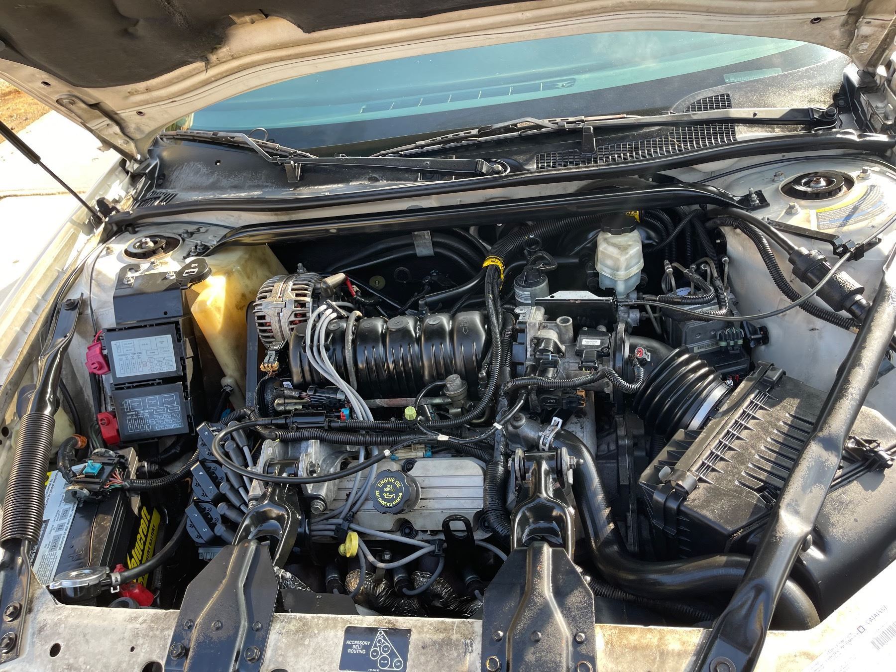 Vehicle highlights: 3.8l v6 engine auto trans, runs and dives, ac, clean insides and out, new battery, 18” wheels white on white Chevy impala