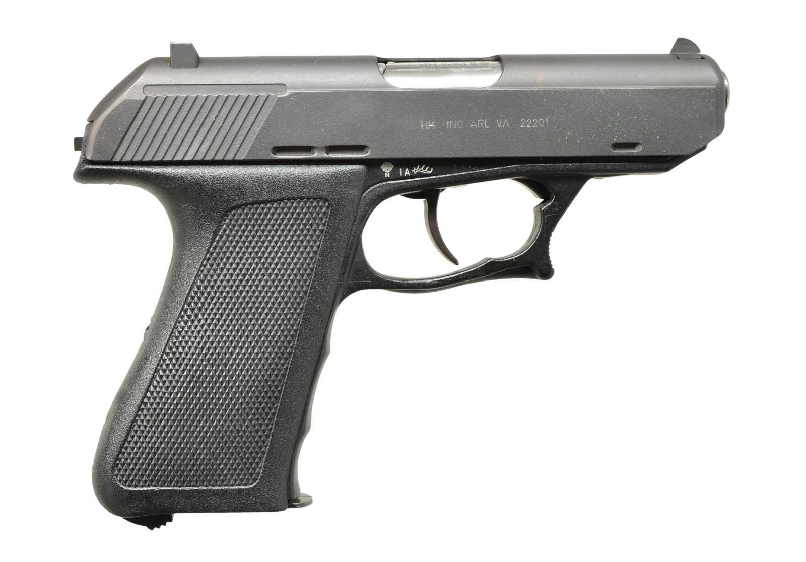MAG. Cal. 9mm Para. S# 124998. Bbl. 4". Black phosphate finish. Bottom release mag. Black plastic grips. 3-Rectangle sighting system marked “HK INC ARL VA” & “22201” on right side of slide. UNATTACHED ACCESSORIES: original box numbered to this pistol. MAGS: 1 in sealed, plastic bag. CONDITION: very fine, essentially “as new”, possibly only fired 7 or 8 times w/ 1 or 2 very minor handling marks. (21-1679/MGM). MODERN. $700-1,100.
