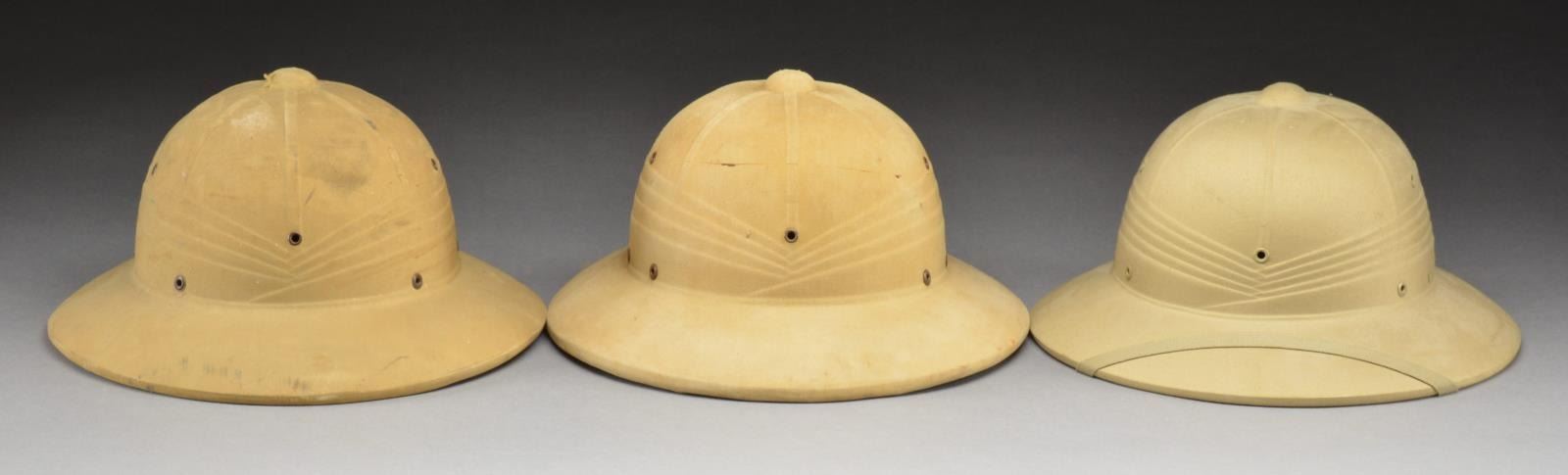 1) 15 AMERICAN & BRITISH HEADGEAR. This lot of helmets includes 4 US M1880 summer sun helmets. 1 Helmet has a spike & base, another has just a spike & the other 2 have no spikes. Helmets are generally in rough condition. / 1 US M1887 summer sun helmet featuring an eagle front plate, spike & spike base. Top of helmet is crushed. / 1 WWII style Civil Defense style helmet painted white having “BERKSTRESSER” written on the front. / 1 Campaign hat having white M1902 cord. / 1 Campaign hat, no cord or sweatband. / 1 Early British sun helmet in rough condition. / 2 WWII era British sun helmets, 1 having a faux leopard band. / 1 M1881 style militia spike helmet for the 69th New York Infantry. Helmet has incorrect side button on the left & is crushed on the top. The chinstrap is detached. / 1 M1872 US militia shako having a label inside the reads in part, “FROM W. STOKES KIRK DEALER IN Government Goods”. / 1 Burns International security guard hat. / 1 NY special officers hat. CONDITION: all helmets & hats show light to moderate wear except where noted. (02-14296(15)/BF). 2) 14 US MILITARY HELMETS & LINERS. This lot of helmets includes 1 WWII sun helmet completely covered in names & hometowns of soldiers presumably in the owner’s unit. The name on the inside is “T.H. RAY”. 1 inscription at the top of the helmet gives that date, “Feb. 13, 1944”. A quick check of 1 name on the helmet, “Mario Romasco” reveals service in the US Navy Seabees in the Pacific Theater. A wonderful relic of the second World War. / 2 WWII sun helmets having Marine Corps globe & anchor insignia on the front. 1 Has a green lining, the other tan. / 6 WWII style military sun helmets. / 1 WWII period M1 helmet liner having the Lt. Colonel’s gold oak leaf painted on the front. / 1 WWII period M1 helmet liner. / 1 Korean War era M1 helmet liner w/ a cracked body. / 1 Swivel bail, rear seam M1 helmet featuring a full liner, chinstrap & camouflage cover. / 1 Swivel bail, rear seam M1 helmet featuring a later liner, chinstrap & camouflage cover. CONDITION: all helmets show light to moderate wear. Most of the sun helmets show light use. A few have scuffs & scrapes. The personalized helmet has clear signatures & is in solid condition. (02-14334-1(14)/BF). 3) 12 US MILITARY HELMETS & LINERS. This lot of helmets includes 1 rear seam, swivel bail helmet featuring a liner that appears to be of WWII vintage, a chinstrap & a camouflage cover. / 1 Modern post Vietnam composite helmet featuring a full liner, chinstrap & camouflage cover. / 1 Front seam, fixed bail helmet featuring a full WWII liner & chinstrap. Helmet has a few noticeable dents. / 1 Liner for a Korean War era M1 helmet. / 6 M1 style helmet liners painted black having a hole drilled in the front to accept insignia. / 1 WWII era liner having a crack & damaged interior webbing. / 1 M1 style helmet liner painted metallic blue. CONDITION: all helmets show light to moderate wear except as noted. (02-14370(12)/BF). 4) 8 US MILITARY HELMETS. This lot of helmets includes 1 WWII M38 Tanker helmet by Rawlings. Helmet is complete & features earphones, cords & goggles. The entire helmet was painted white in the period, possibly for winter camouflage. / 1 WWI dough boy style helmet having a 27th Division insignia painted on the front having liner & chinstrap. Soldier’s name & unit is stenciled around the inside rim. / 1 WWI dough boy style helmet having a 27th Division insignia painted on the front, no liner or chinstrap. /1 WWI dough boy style helmet having a painted insignia on the front showing a naval flag & the words, “7TH BATT. U S N R”. The entire helmet is painted deep blue & missing the liner & chinstrap. / 1 WWII Civil Defense helmet painted white having full liner & chinstrap. / 1 Early composite hard hat as worn by construction workers. / 1 Post WWII M1 style helmet featuring a rear seam, full liner & swivel bails. / 1 Post WWII M1 style helmet featuring a partial Red Cross on white painted on the front. Helmet has a rear seam, swivel bails, partial liner & full chinstrap. CONDITION: all helmets show light to moderate wear except as noted. (02-14383(8)/BF). $1,500-2,000.