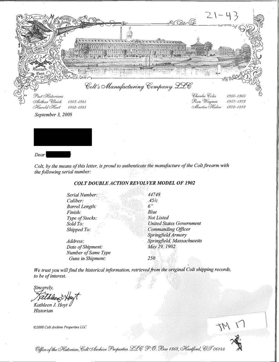 Lot 1171 COLT 1902 US DA REVOLVER.