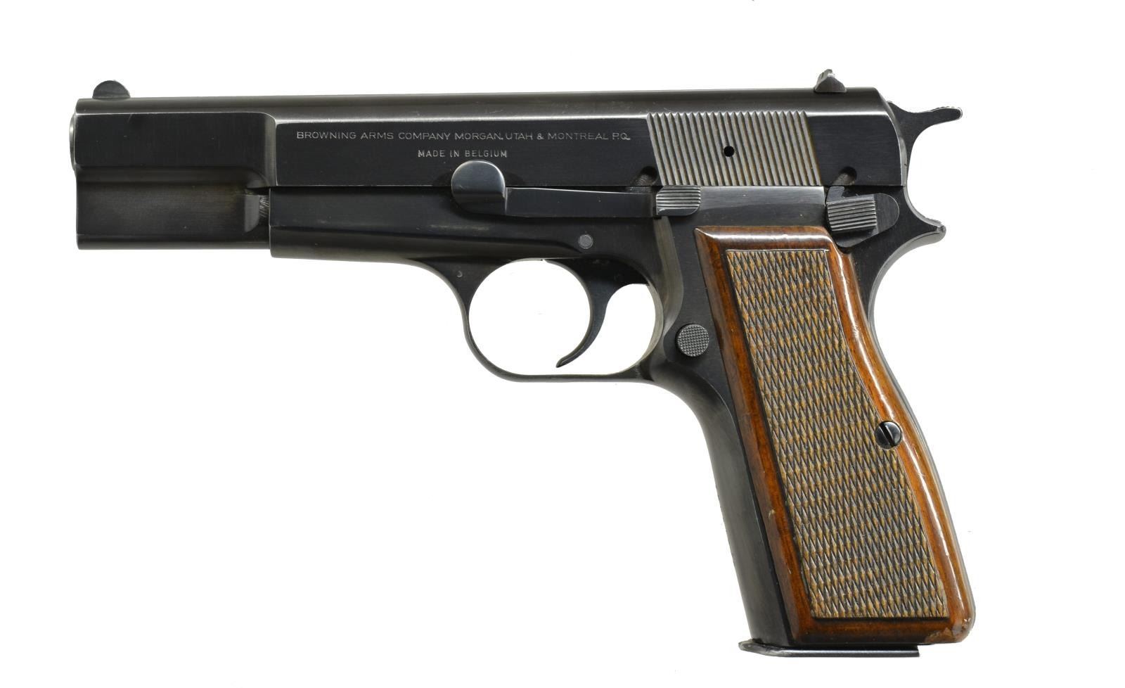 Cal. 9mm. S# 72C61949. Blued finish. Standard configuration w/ checkered walnut grips. Browning marks on slide. MAGS: 1-13 rd. CONDITION: fine. Retaining approx. 90% blue w/ high edge wear & worn finish on straps; grips w/ a couple of marks & lifted finish. Standard sights have added plastic dots for better visibility. Bright shiny bore. Mechanically good. (21-1472/MGM). MODERN. $700-900.